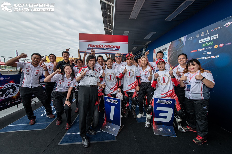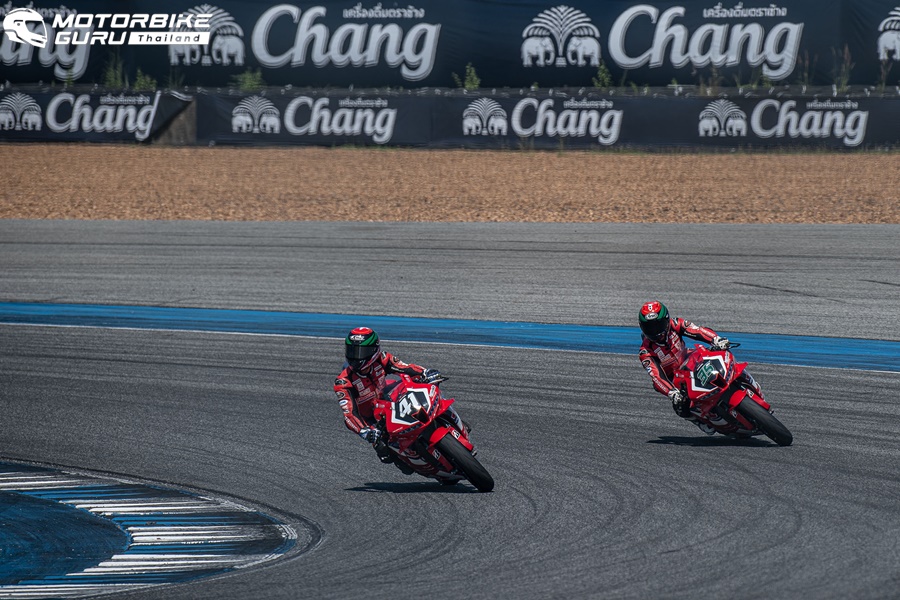 ส่วนการลุ้นแชมป์ในรุ่น ซูเปอร์สปอร์ต 600 ซีซี ดำเนินไปด้วยความเข้มข้นตลอดทั้งเรซ ต้องมาตัดสินกันถึงโค้งสุดท้าย หลังจบ 12 รอบสนาม โดยชัยชนะตกเป็นของ นิว-กฤชพร เฉือนทีมเมทรุ่นพี่อย่าง แชมป์-ภาสวิชญ์ อันดับ 2 เพียง 0.035 วินาทีเท่านั้น ขณะที่ ชิพ-นครินทร์ จ่าฝูงบนตารางแชมเปี้ยนชิพจบเรซอันดับ 3 ตามหลังเพียง 0.308 วินาที
