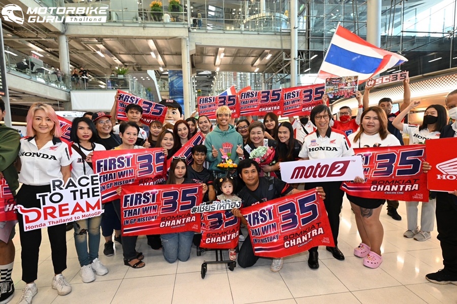 ก้อง-สมเกียรติ จันทรา ยอดนักบิดไทยจากโครงการ ฮอนด้า เรซ ทู เดอะ ดรีม ครองอันดับ 10 ของโลกเมื่อจบฤดูกาล 2022 ในศึกจักรยานยนต์ทางเรียบชิงแชมป์โลก รุ่นโมโตทู เดินทางกลับประเทศไทย หลังกรำศึกหนักมาตลอดฤดูกาล ท่ามกลางแฟนคลับชาวไทยจำนวนมากที่มาร่วมต้อนรับกลับบ้านอย่างอบอุ่น ให้กับนักแข่งผู้บันทึกประวัติศาสตร์ว่าเป็นนักแข่งไทยที่ดีที่สุด และเก็บคะแนนได้มากที่สุด จากรายการแข่งขันในระดับ เวิลด์ จีพี หลังสร้างผลงานอันยอดเยี่ยมด้วยการคว้ามาแล้วถึง 4 โพเดียมในศึกโมโตทูชิงแชมป์โลก หนึ่งในนั้นคือการคว้าชัยชนะประวัติศาสตร์ในการแข่งขันสนามที่ 2 อินโดนีเซียน กรังด์ปรีซ์ ประเทศอินโดนีเซีย สร้างความตื่นเต้น ยินดี ให้กับแฟนชาวไทยเป็นอย่างมาก ซึ่งหลังจากจบฤดูกาลแข่งขันอย่างยาวนาน