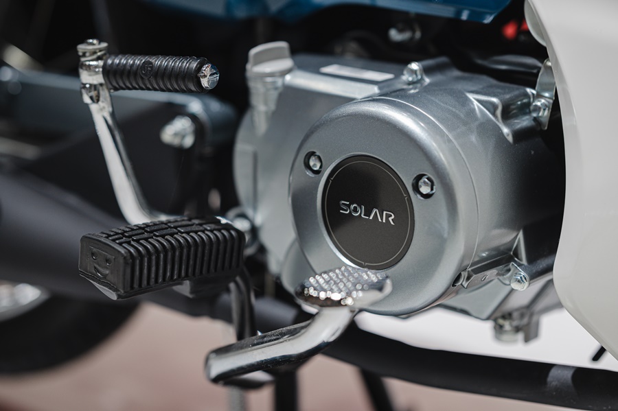 SOLAR ขับเคลื่อนด้วย เครื่องยนต์ 4 จังหวะ ขนาด 125 CC 1 สูบ SOHC 2 วาล์วระบายความร้อนด้วยอากาศ โดยมีอัตราส่วนกำลังอัด 8.4 : 1 จุดระเบิดด้วยระบบ CDI ที่ให้แรงม้าสูงสุดถึง 6.0 Kw ที่ 8000 rpm แรงบิดสูงสุด 8.8 Nm ที่ 6000 rpm โดยมีระบบจ่ายเชื้อเพลิงแบบคาบูเรเตอร์ ในความจุถังน้ำมันที่ 3.5 ลิตร ซึ่งรองรับน้ำมันได้ทั้งแบบแก๊สโซฮอล์ 91,95 และE10 ทำความเร็วได้ถึง 90 กม./ชม. พร้อมระบบสตาร์ตมือแบบ Electric Start และเท้าสตาร์ต Kick Start โดยมีให้เลือกถึง 3 สไตล์ นำโดย PROUD, GROOVE URBAN และ GROOVE CROSS ด้วยคาแรกเตอร์ที่ชัดเจน ดีไซน์โดดเด่น สามารถตอบโจทย์ไลฟ์สไตล์ไม่เหมือนใคร