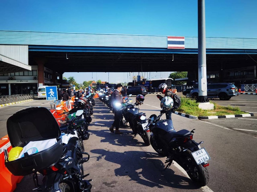 เมื่อทุกอย่างพร้อมแล้วขบวน Bajaj Dominar 400 ก็ออกสตาร์ทมุ่งหน้าไปยังด่านหนองคายเพื่อข้ามไปเวียงจันทร์ ประเทศลาว พร้อมสัมผัสธรรมชาติ 2 ข้างทางด้วยวิวริมแม่น้ำโขง