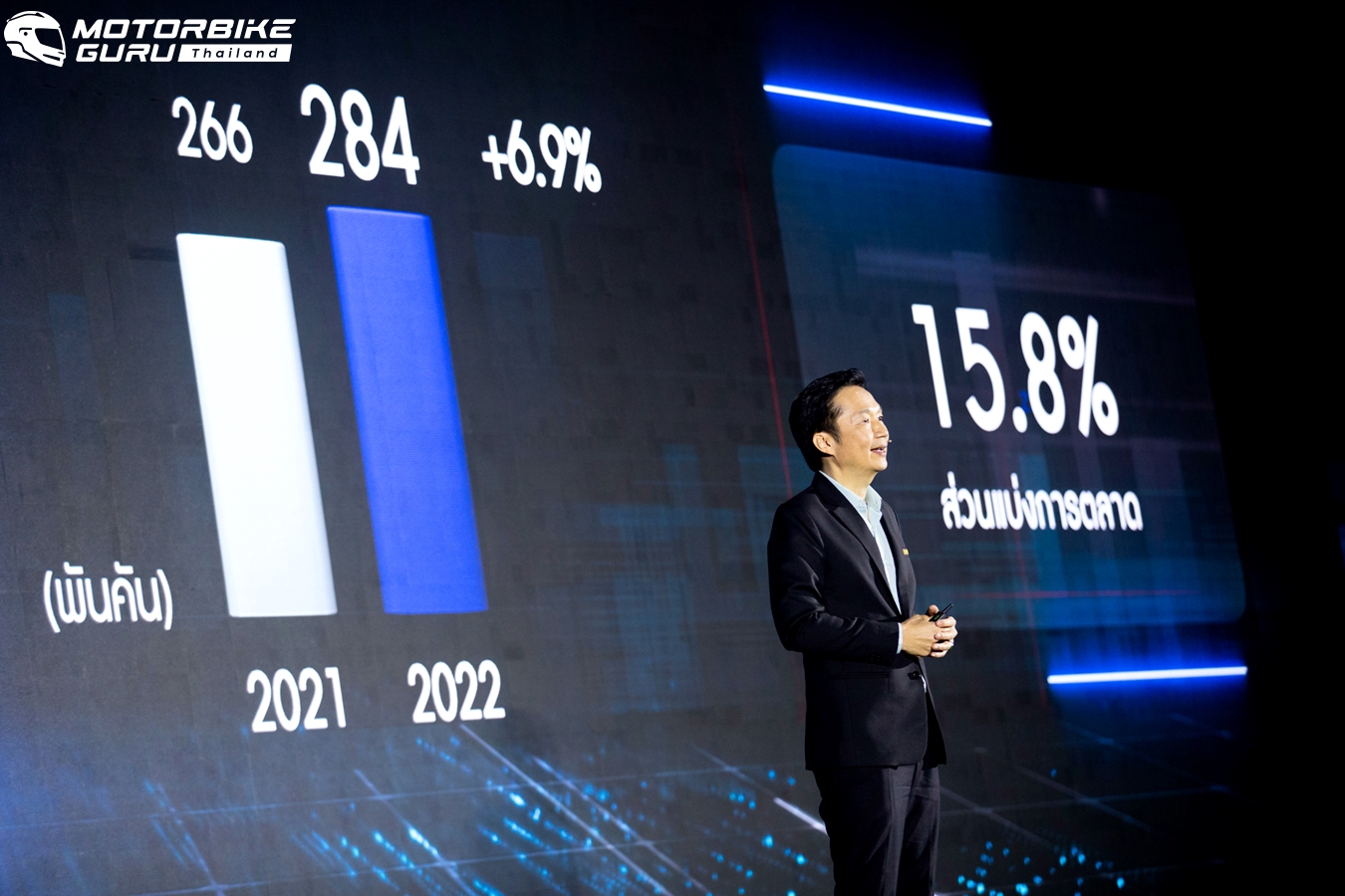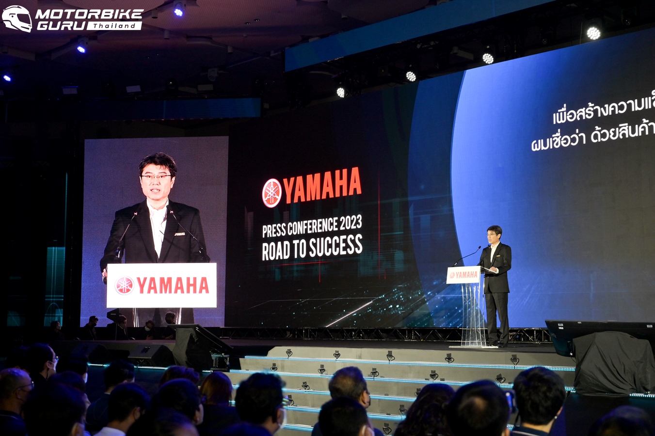 มร.ทัตสึยะ โนซากิ ประธานกรรมการบริหาร บริษัท ไทยยามาฮ่ามอเตอร์ จำกัด กล่าวถึงความสำเร็จของยามาฮ่าในปีที่ผ่านมาว่า “ก่อนอื่นผมต้องของขอบคุณท่านสื่อมวลชน พันธมิตรทางการค้า ร้านผู้จำหน่ายรถจักรยานยนต์ยามาฮ่า และลูกค้ารถจักรยานยนต์ยามาฮ่าทุกท่าน สำหรับการสนับสนุนและความร่วมมืออย่างดียิ่งในปีที่ผ่านมา ด้วยประเทศไทยเป็นหนึ่งในตลาดที่สำคัญ และทุกหน่วยงานมีความมุ่งมั่นทำงานร่วมกับยามาฮ่าประเทศญี่ปุ่นวางแผนและพัฒนาสินค้าออกมาอย่างดีที่สุด แม้จะมีปัจจัยเรื่องความไม่แน่นนอนของสินค้าที่ได้รับผลกระทบ รวมถึงปัญหาการขาดแคลนสินค้า ซึ่งเราก็สามารถแก้ไขและสร้างสถานการณ์ให้ดีขึ้น จนสามารถที่จะบรรลุผลประกอบการ และยอดขายประจำปีได้ตามเป้าหมายเรายังคงพัฒนาผลิตภัณฑ์และบริการใหม่ๆอย่างต่อเนื่อง เพื่อสร้างความแข็งแกร่งให้ตราสินค้ายามาฮ่าในประเทศไทย และยังคงเน้นย้ำในความสำคัญของบริการหลังการขาย ซึ่งเป็นส่วนสำคัญที่จะสร้างความแข็งแกร่งกับความเป็นสินค้าพรีเมี่ยมของเรา และสร้างลูกค้าให้อยู่กับเราไปตลอดชีวิต ผมเชื่อว่า ด้วยสินค้าที่เราเตรียมไว้สำหรับปีนี้ และแผนงานที่ได้วางไว้ เราจะสามารถบรรลุเป้าการขาย และส่วนแบ่งการตลาดที่เรามุ่งหวัง และเรามุ่งมั่นที่จะมอบประสบการณ์ที่ยอดเยี่ยม เหนือกว่าความคาดหวัง ให้กับลูกค้าของเราทุกๆ คนครับ”