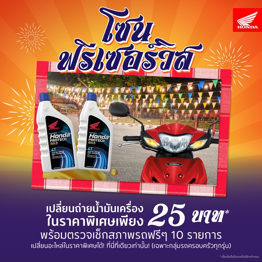 โซนฟรีเซอร์วิส โซนที่คนรักเวฟสามารถเปลี่ยนถ่ายน้ำมันเครื่องในราคาพิเศษเพียง 25 บาท พร้อมตรวจเช็กสภาพรถฟรีๆ 10 รายการ พร้อมเปลี่ยนอะไหล่ในราคาพิเศษ เฉพาะรถกลุ่มครอบครัวทุกรุ่น