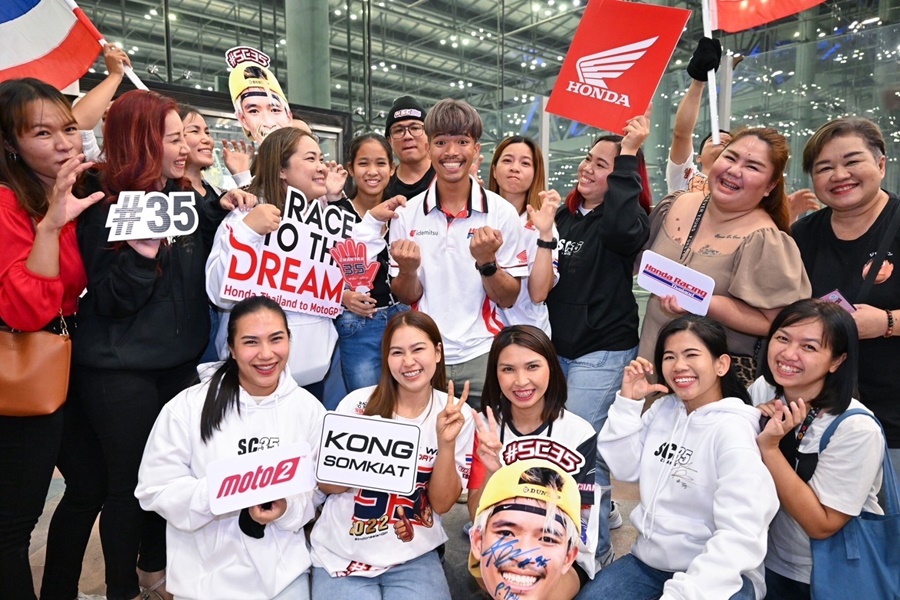โดยมี ดร.อารักษ์ พรประภา รองประธานกรรมการบริหาร พร้อมด้วยคณะผู้บริหาร บริษัท ไทยฮอนด้า จํากัด รวมถึงแฟนชาวไทยที่ไปร่วมให้กำลังใจถึงสนามบินสุวรรณภูมิอย่างคับคั่ง