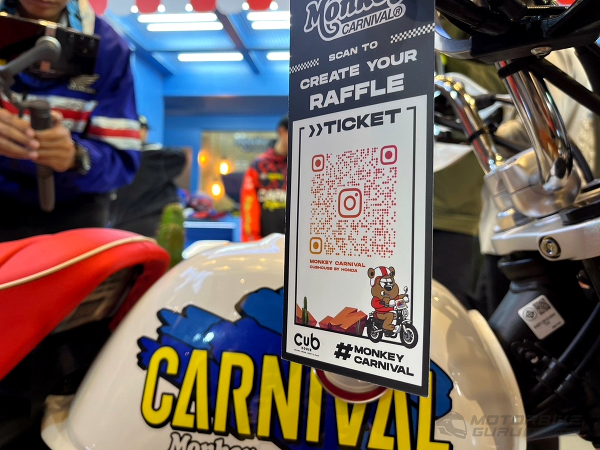 ผู้ที่สนใจสามารถร่วมลุ้นเป็นเจ้าของ Monkey Carnival Limited Edition 5 คันแรก ผ่านกิจกรรมบนหน้าเพจ Facebook CUB House เพียงร่วมกิจกรรม Ticket Photo ถ่ายรูปคู่กับรถ Monkey Carnival Limited Edition คันจริงที่ร้าน Carnival สาขา Warehouse 30 และสาขาสยามสแควร์ และโพสต์ร่วมกิจกรรมใน Facebook ของ CUB House โดยจะมีการประกาศรายชื่อผู้มีสิทธิ์ในวันศุกร์ ที่ 24 กุมภาพันธ์ และจับรางวัลในวันอาทิตย์ที่ 26 กุมภาพันธ์ ที่หน้าร้าน Carnival at Siam square