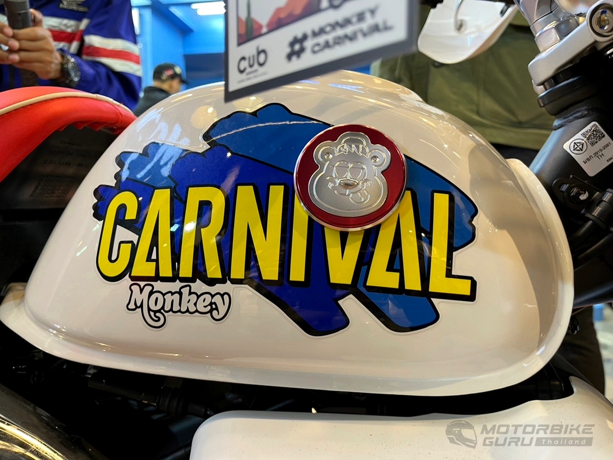 Monkey Carnival Limited Edition ได้รับการออกแบบด้วยแรงบันดาลใจจาก Baja Motocross ที่โด่งดังในอดีต ถ่ายทอดกลิ่นอายของรถสายลุยสู่ Monkey ได้อย่างลงตัว โดดเด่นด้วยลายกราฟิกแนวสตรีทบนถังน้ำมัน Carnival Fuel Tank มาพร้อมเบาะ Carnival Red Seat สีแดง เติมสีสันให้สตรีทไปอีกขั้น เสริมลุคความเป็น Motocross ด้วย Carnival Hand Guard และ Carnival Wind Shield ให้สายลุยได้สนุกอย่างเต็มที่ ตอกย้ำความ Limited ด้วยการรัน Serial Number เลข 01-99 ที่ตัวถังและครอบกรองอากาศด้านข้างรถ