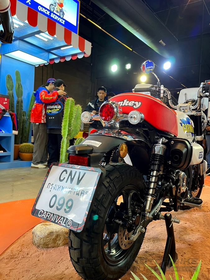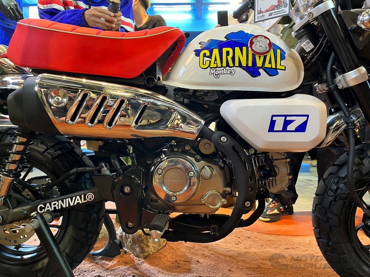 Monkey Carnival Limited Edition ยังผสาน DNA ของ Carnival เข้าไปในแต่ละจุดของตัวรถ ไม่ว่าจะเป็นโลโก้ Monkey Carnival บน Side Cover ที่เพิ่มความเท่ด้วย Chrome Coating และโลโก้ Carnival บนสวิงอาร์มของรถ พร้อมซนไปทุกที่ด้วยเครื่องยนต์ 125 ซีซี 5 เกียร์ ให้คุณขี่สนุกทุกเส้นทาง พร้อมไฟหน้าทรงกลมในแบบฉบับของ Monkey และหน้าปัด LED แบบ Negative Meter กับลูกเล่นGraphic หน้าลิงแสบซน ตามสไตล์ Honda Monkey