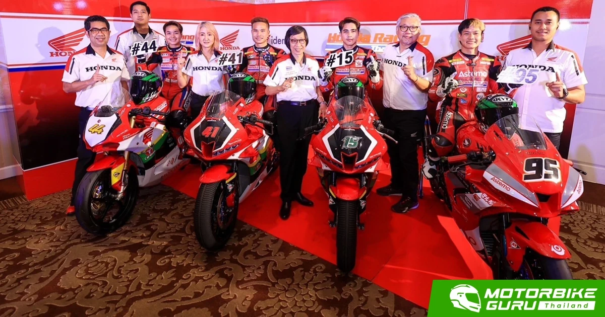 รถจักรยานยนต์ฮอนด้า ผู้นำวงการมอเตอร์สปอร์ตไทย ประกาศล่าแชมป์เอเชีย ส่ง 6 นักบิดไทยลุยศึก เอเชีย โร้ด เรซซิ่ง แชมเปี้ยนชิพ 2023 ด้วยรถแข่ง CBR Series ครบทุกคลาสในไลน์อัพ แชมป์-ภาสวิชญ์ ฐิติวรารักษ์ ดวลรุ่นใหญ่อย่าง เอเชีย ซูเปอร์ไบค์ 1,000 ซีซี ขณะในรุ่น ซูเปอร์สปอร์ต 600 ซีซี ชิพ-นครินทร์ อธิรัฐภูวภัทร์ จับคู่ นิว-ปัณณสรณ์ แก้วสนธิ พร้อมดึง นักบิดสาวแกร่ง มุกข์-มุกข์ลดา สารพืช คัมแบ็กทวงบัลลังก์ เอเชีย โปรดักชั่น 250 ซีซี ผนึกกำลังดาวรุ่ง ข้าวกล้อง-จักรีภัทร พฤฒิสาร และ มิกซ์-ธนัช ละอองปลิว เปิดฉากสนามแรกที่ บุรีรัมย์ เดือนมีนาคมนี้