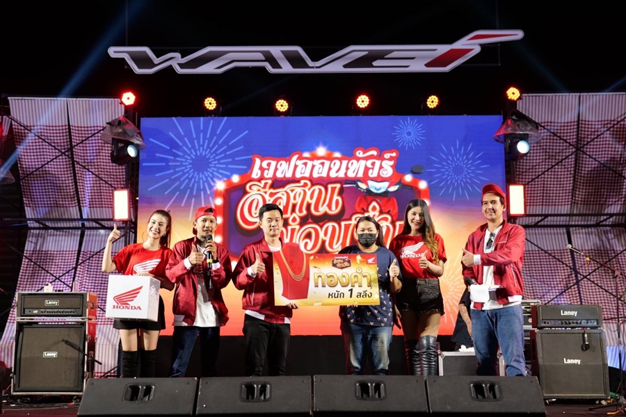 ที่มาพร้อมกับคาราวานฮอนด้าเวฟสุดยิ่งใหญ่ แค่นั้นไม่พอยังมีกิจกรรมในงานให้ชิงรางวัลกลับบ้านกันแบบจุใจ ต่อด้วยได้แซ่บไปกับของอร่อยมากมายในโซนม่วนแซ่บ ที่ขนร้านเด็ด ร้านดังมาเพียบ ที่ฮอนด้าเวฟจัดมาให้แฟนๆ ชาวอีสานโดยเฉพาะ