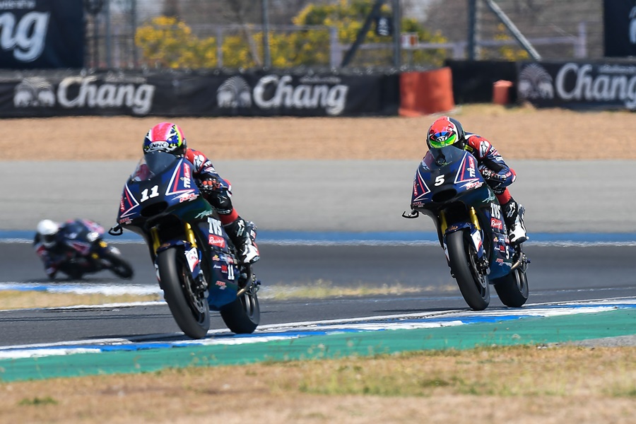 ขณะที่นักบิดดาวรุ่งชาวไทยอย่าง ข้าวกล้อง-จักรีภัทร พฤฒิสาร จาก ฮอนด้า เรซซิ่ง ไทยแลนด์ รั้งอันดับ 3 ตามหลัง 0.443 วินาที ตามด้วยทีมเมทรุ่นพี่อย่าง มุกข์-มุกข์ลดา สารพืช ในอันดับ 5 ตามหลัง 0.813 วินาที