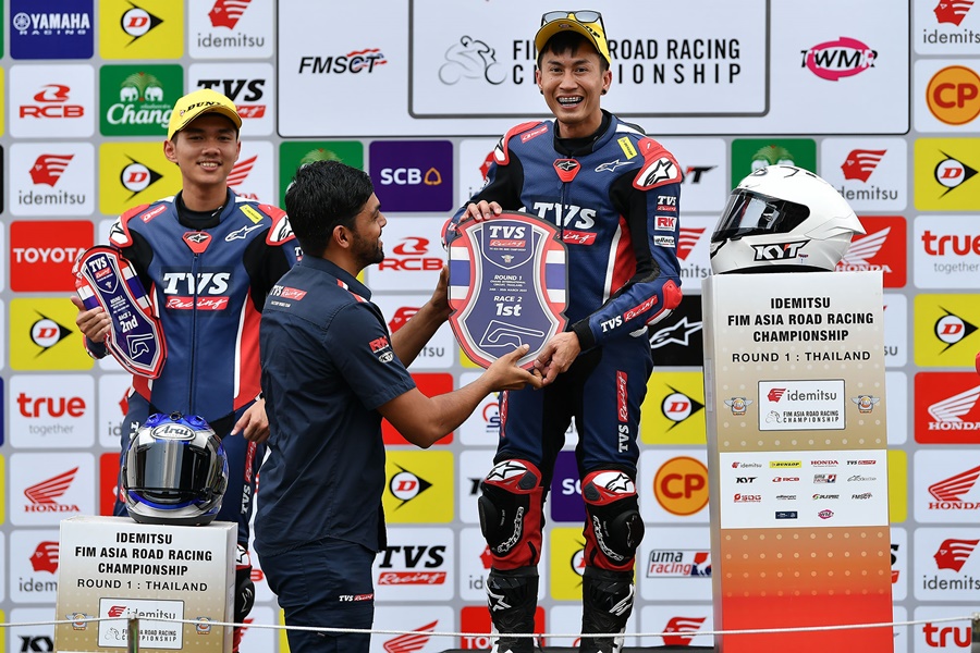 นอกจากนี้ ยังมีหนึ่งในการแข่งขันที่สร้างรอยยิ้มให้แฟนความเร็วชาวไทย หลังจากที่ เอ้-วรพงศ์ มาลาหวล นักบิดมากประสบการณ์ผงาดคว้าชัยชนะโฮมเรซในศึก ทีวีเอส วันเมคเรซ แชมเปี้ยนชิพ เรซแรก ด้วยเวลา 14 นาที 55.442 วินาที เฉือนดาวรุ่งชาวไทยอย่าง ฟิล์ม-ปิยวัฒน์ ประทุมยศ อันดับ 2 เพียง 0.140 วินาที อันดับ 3 เป็นของ ไทโยะ ไซโตะ นักบิดญี่ปุ่น ตามหลัง 4.314 วินาที