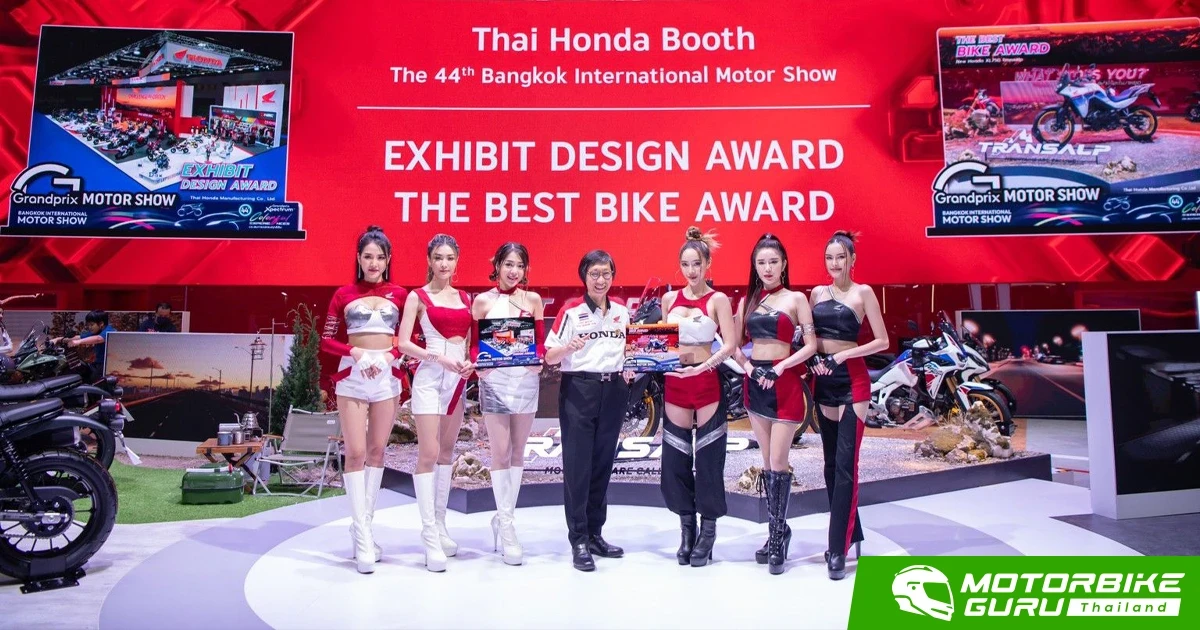 รถจักรยานยนต์ฮอนด้าผู้นำวงการรถจักรยานยนต์ไทยได้รับเกียรติคว้า 2 รางวัล Exhibit Design Award รางวัลออกแบบบูธยอดเยี่ยม และ The Best Bike Award รางวัลรถจักรยานยนต์ยอดเยี่ยม ในงานบางกอกมอเตอร์โชว์ 2023