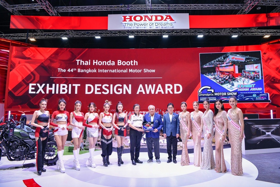 ไทยฮอนด้านำเสนอความมุ่งมั่นที่จะเผชิญกับทุกความท้าทาย เพื่อแบ่งปันความสุขและความน่าตื่นตาตื่นใจสู่ผู้คน เป็นที่มาของบูธภายใต้คอนเซปต์ Challenge the Horizon เพื่อสะท้อนให้เห็นถึงวัฒนธรรมและนวัตกรรมเฉพาะตัวของการขับขี่ พร้อมจัดแสดงนวัตกรรม EV Ecosystem และเทคโนโลยีเครื่องยนต์เรืออันทรงพลังของฮอนด้า ทำให้ได้รับรางวัล Exhibit Design Award