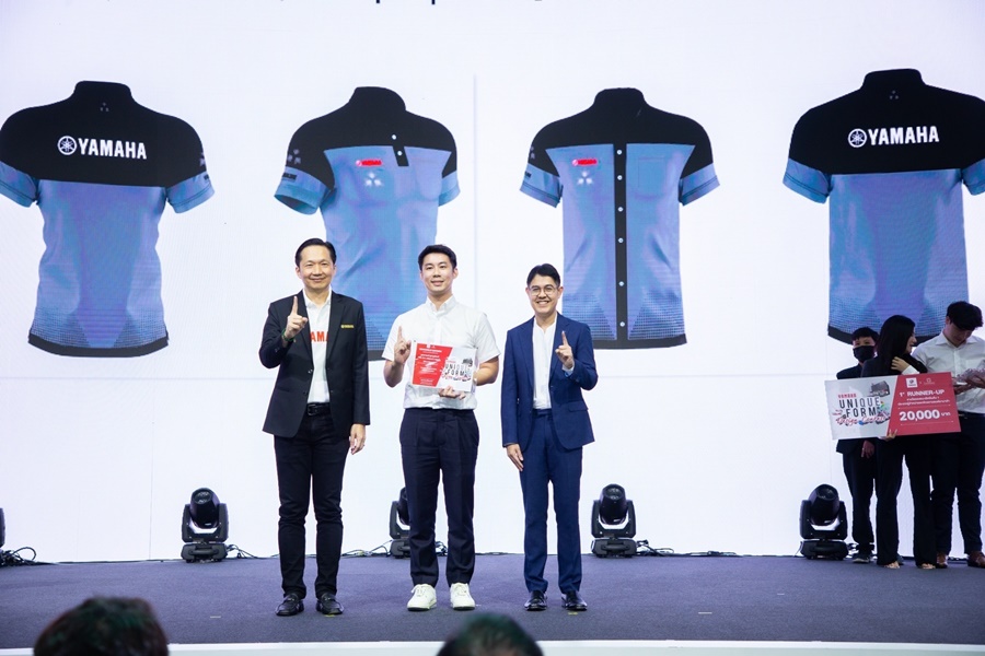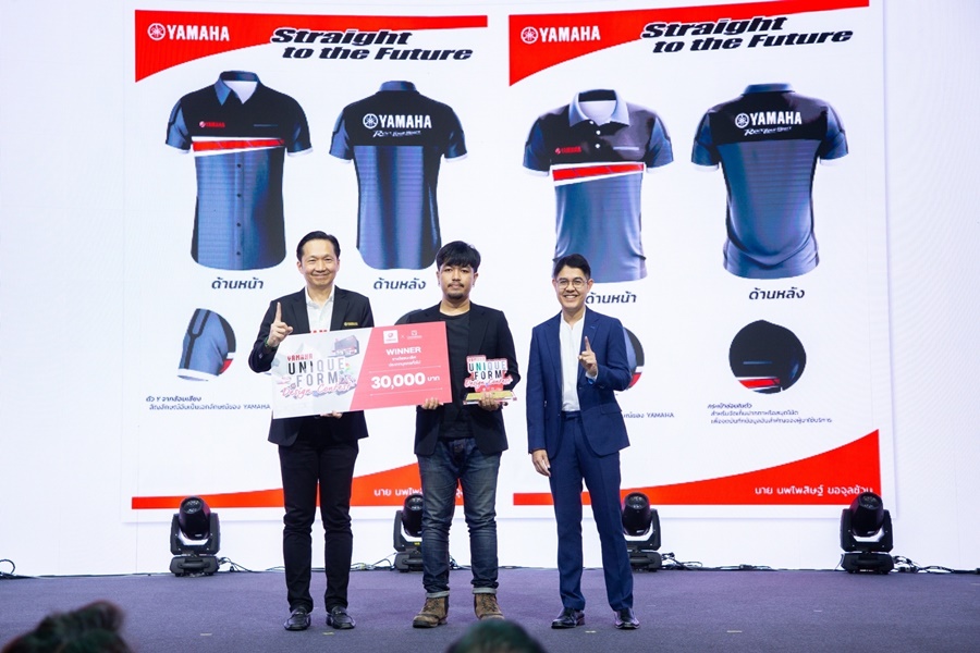 นายพงศธร เอื้อมงคลชัย รองประธานกรรมการบริหาร, นายภาณุพล กิตติคำรณ รองผู้จัดการใหญ่ด้านการขายและการตลาด บริษัท ไทยยามาฮ่ามอเตอร์ จำกัด และ นายวรภัทร์ สังข์น้อย ผู้ช่วยผู้อำนวยการ และประธานคณะกรรมการการพัฒนาการศึกษา สถาบันออกแบบนานาชาติชนาพัฒน์ ถ่ายภาพร่วมกับผู้เข้าแข่งขันและได้รับรางวัลในการประกวดการออกแบบชุดยูนิฟอร์ม YAMAHA UNIQUE FORM DESIGN CONTEST อันดับ 1 – 3 ในประเภทบุคคลทั่วไปและประเภทร้านผู้จำหน่าย โดยผลงานการออกแบบของผู้ชนะเลิศการแข่งขันจะถูกนำมาผลิตให้กับทางบุคลากรของผู้จำหน่ายรถจักรยานยนต์ยามาฮ่ากว่า 600 สาขาทั่วประเทศ