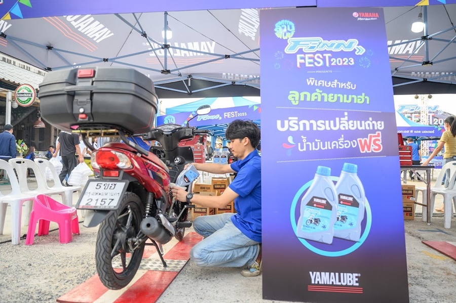 นายพงศธร เอื้อมงคลชัย รองประธานกรรมการบริหาร พร้อมด้วย นายภาณุพล กิตติคำรณ รองผู้จัดการใหญ่ด้านการขายและการตลาด บริษัท ไทยยามาฮ่ามอเตอร์ จำกัด ร่วมกันเปิดเทศกาลลานฟินน์ ในกิจกรรม ฟินน์เฟส 2023 รวมพลคนฟินน์ ฟินน์ ณ ตลาดรถไฟศรีนครินทร์