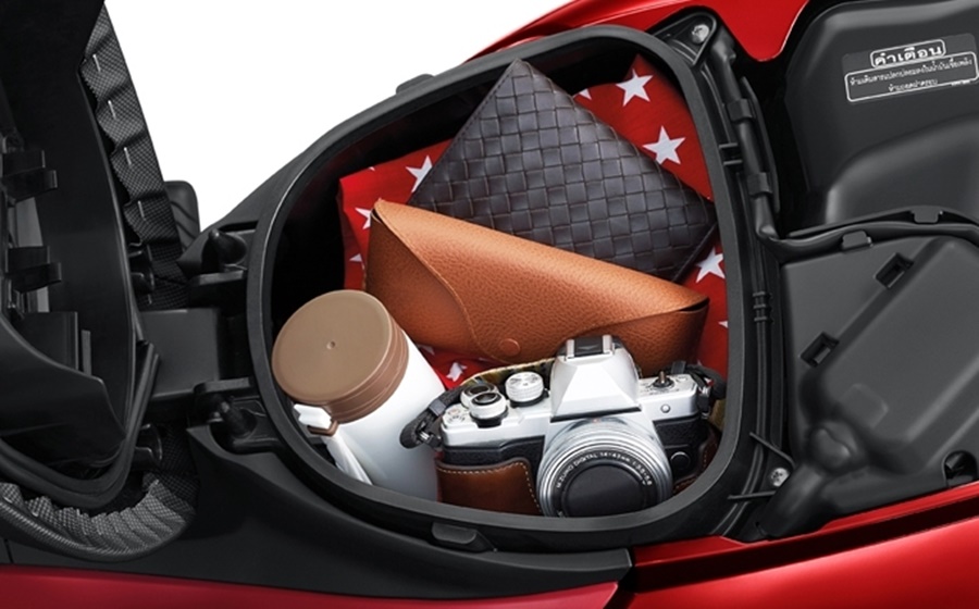 New Honda Wave110i ดีไซน์ใหม่ สะดุดตาด้วยลายเส้นกราฟิกใหม่รอบคัน ไม่ว่าจะเป็นลายด้านข้าง หรือด้านหน้า ให้ความรู้สึกสปอร์ต เพิ่มความโดดเด่นด้วยเบาะสีแดง (เฉพาะรุ่นล้อแม็กสีขาว) สะท้อนรูปลักษณ์ความเป็นสปอร์ตพรีเมียมได้อย่างลงตัว