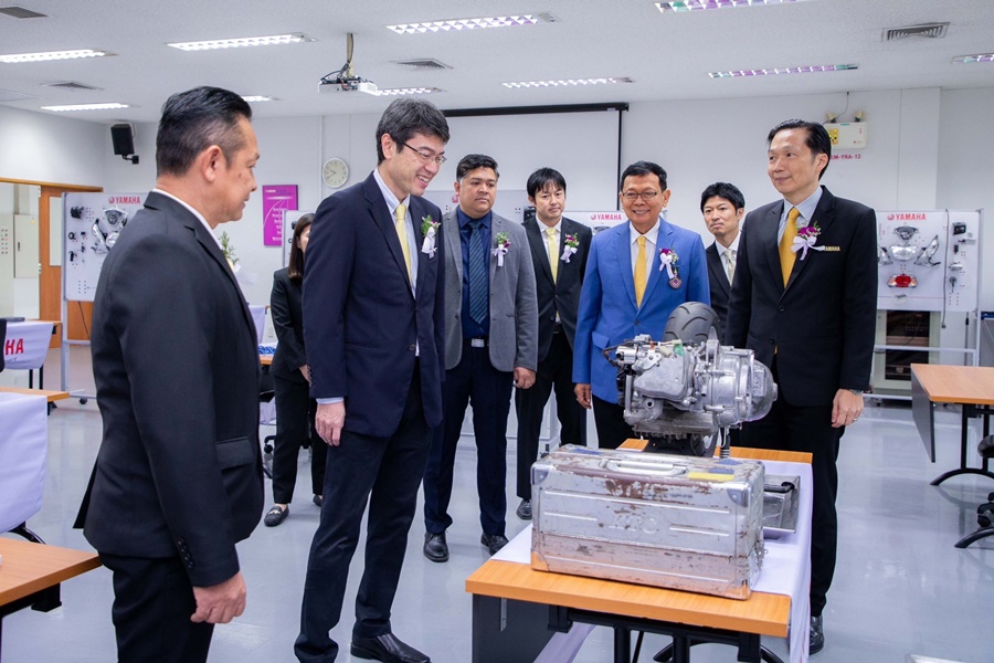 มร.ทัตสึยะ โนซากิ ประธานกรรมการบริหาร, นายพงศธร เอื้อมงคลชัย รองประธานกรรมการบริหาร พร้อมคณะผู้บริหารระดับสูง บริษัท ไทยยามาฮ่ามอเตอร์ จำกัด ถ่ายภาพร่วมกับ ดร.ประเสริฐ กลิ่นชู นายกสมาคมวิทยาลัยเทคโนโลยีและอาชีวศึกษาเอกชนแห่งประเทศไทย ในพระราชูปถัมภ์ สมเด็จพระเทพรัตนราชสุดาฯ สยามบรมราชกุมารี ในพิธีเปิดการแข่งขันทักษะวิชาชีพ สาขาวิชารถจักรยานยนต์ยามาฮ่า ระดับประเทศรอบสุดท้าย 30 วิทยาลัยอาชีวศึกษาเอกชน