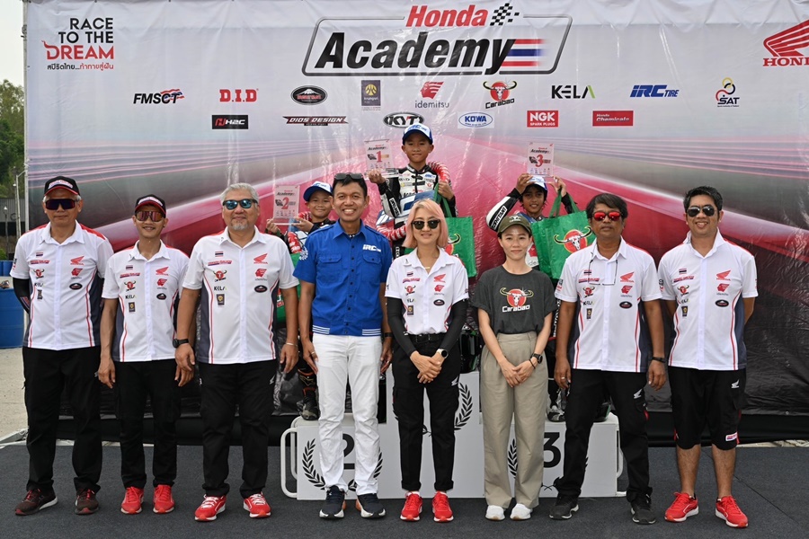 ก่อนที่ น้องมะมาย-ปองคุณ หมายเลข 6 จะเบียดคว้าชัยชนะเรซแรกไปครอง ตามด้วย น้องไอโฟน-จิรภัทร หมายเลข 2 และอันดับ 3 บนโพเดียมตกเป็นของ น้องแจ๊ค-แจ๊ค โอคลีย์ หมายเลข 4 ในการแข่งขัน ฮอนด้า อะคาเดมี่ 2023 สนามแรก เมื่อสุดสัปดาห์ที่ผ่านมา ณ สนามพีระคาร์ท พัทยา ที่ลงประชันฝีมือด้วยรถแข่ง Honda NSF100 โดยลงทำการแข่งขันกันทั้งสิ้น 2 เรซ