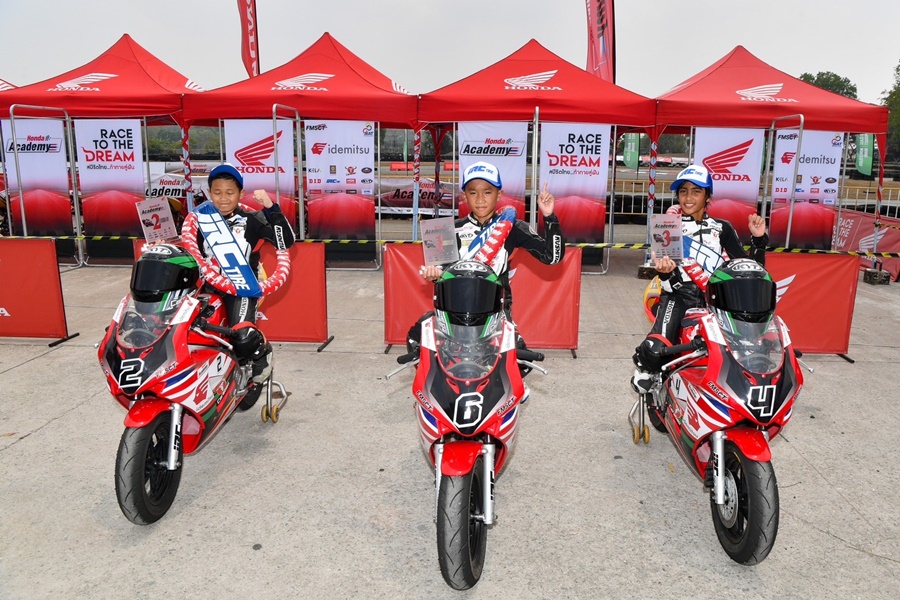 น้องมะมาย-ปองคุณ หมายเลข 6 นักบิดจิ๋ว ภายใต้โครงการปั้นเยาวชนสู่นักแข่งในระดับโลก ฮอนด้า เรซ ทู เดอะ ดรีม บิดคว้าชัยประเดิมรายการในการแข่งขันสนามแรก เรซที่ 1 โดยในเรซแรกนั้น