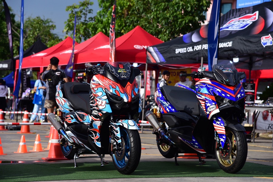 และรถแต่งที่เข้าร่วมประกวดในรุ่น YAMAHA NMAX, YAMAHA XMAX และ YAMAHA TMAX และขาดไม่ได้กับลานทดสอบ New YAMAHA XMAX Connected เติมเต็มบรรยากาศด้วยโชว์ Maxy Bike wash พร้อมเพิ่มความมันกับเสียงเพลงจากดีเจชื่อดัง พร้อมทั้งกิจกรรม CSR ให้กับชุมชนชาวอ่างศิลา