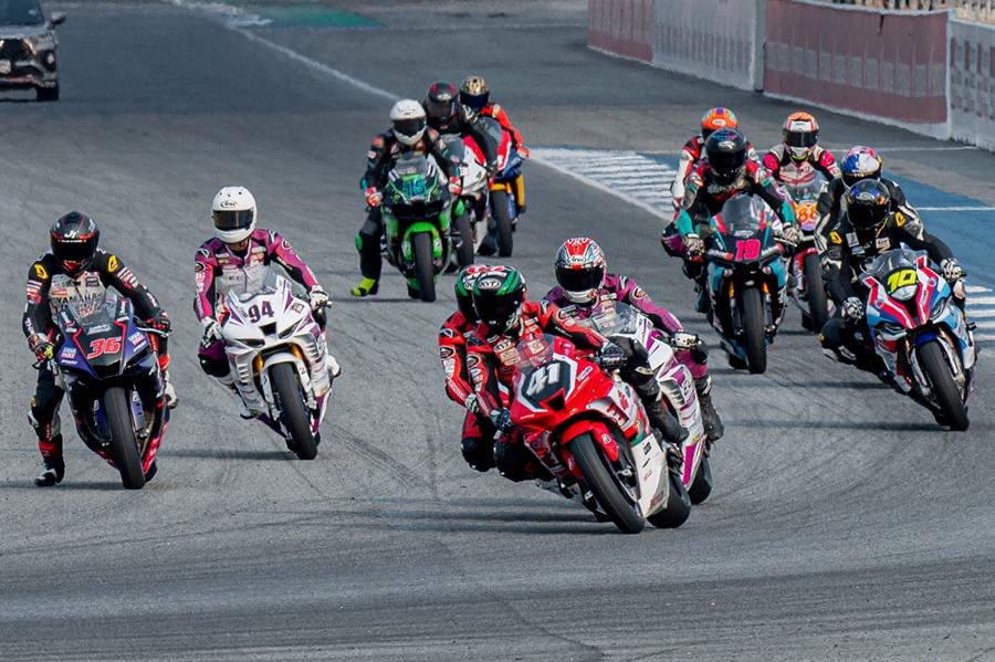 สถานการณ์ลุ้นแชมป์ประจำปีในรุ่นใหญ่ที่สุดของไทย ซูเปอร์ไบค์ 1,000 ซีซี อดีตนักบิดโมโตทรีชาวไทยอย่าง ชิพ-นครินทร์ อธิรัฐภูวภัทร์ ผู้ชนะสนามแรกจาก ฮอนด้า เรซซิ่ง ไทยแลนด์ รั้งจ่าฝูงมี 25 คะแนน เหนือทีมเมทอย่าง แชมป์-ภาสวิชญ์ ฐิติวรารักษ์ รองจ่าฝูงเพียง 5 คะแนนเท่านั้น ส่วนอันดับ 3 เป็นหนึ่งในนักบิดมากประสบการณ์คือ บอล-จักรกฤษณ์ แสวงสวาท จาก อีสต์ เอ็นเจที เรซซิ่ง ทีม ตามหลัง 9 คะแนน