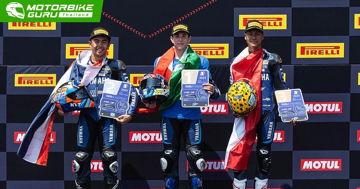 คู่หูนักบิดดาวรุ่ง ยามาฮ่า ไทยแลนด์ เรซซิ่ง ทีม แจ้งเกิดอย่างเต็มตัวในศึกดาวรุ่งชิงแชมป์ยุโรป รายการ Yamaha R3 bLU cRU European Cup 2023 หลังทะยานคว้าโพเดียมจากสนาม 3 และท็อปไฟว์เมื่อวันเสาร์ที่ผ่านมา ที่ มิซาโน เวิลด์ เซอร์กิต มาร์โก ซิมอนเซลลี่ ประเทศอิตาลี