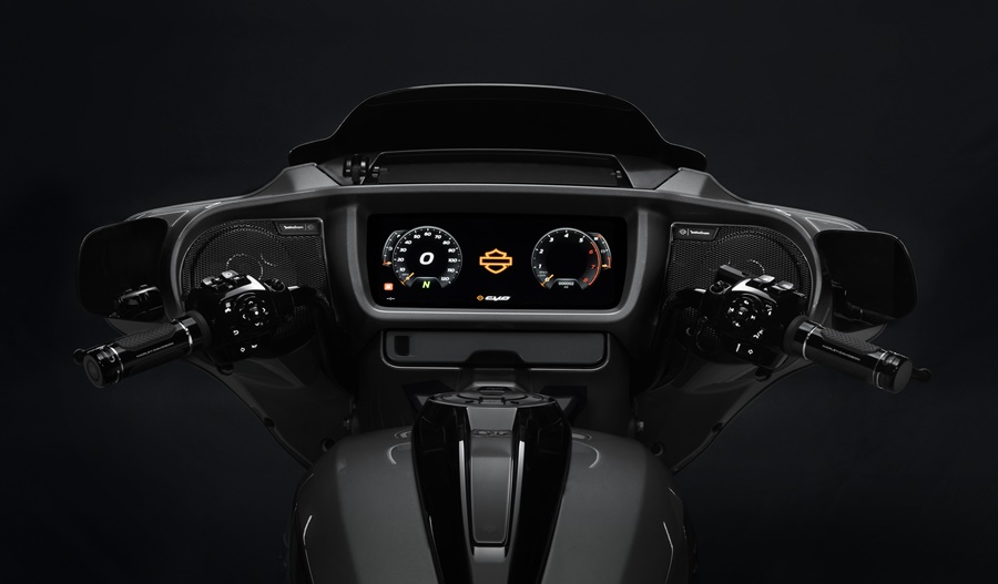 รถมอเตอร์ไซค์รุ่น CVO™ Street Glide® และ CVO™ Road Glide® ติดตั้งชุดระบบอินโฟเทนเมนต์ Skyline™ OS และปรับโฉมหน้าจอแบบอะนาล็อกและสวิตช์ควบคุมใหม่ทั้งหมด ด้วยหน้าจอสัมผัสสี TFT ขนาด 12.3 นิ้ว จอแสดงผลระดับพรีเมียมนี้สามารถปรับแต่งได้ถึงสามรูปแบบ รองรับการเชื่อมต่อเข้ากับอุปกรณ์ Apple และ Android ผ่านระบบอินเทอร์เน็ตแบบไร้สาย (Wi-Fi) และสัญญาณ Bluetooth® สำหรับชุดหูฟังไร้สาย ทั้ง 2 รุ่นนี้มาพร้อมหน่วยความจำสำรองสำหรับมัลติเมีย และช่องเสียบ USB-C ขับขี่เร้าใจไปกับชุดเครื่องเสียง Harley-Davidson ประสิทธิภาพสูงสุดระดับพรีเมียมจาก Rockford Fosgate® Stage II ส่งแรงกำลังด้วยแอมพลิฟายเออร์ RMS 500 วัตต์ โฉมใหม่