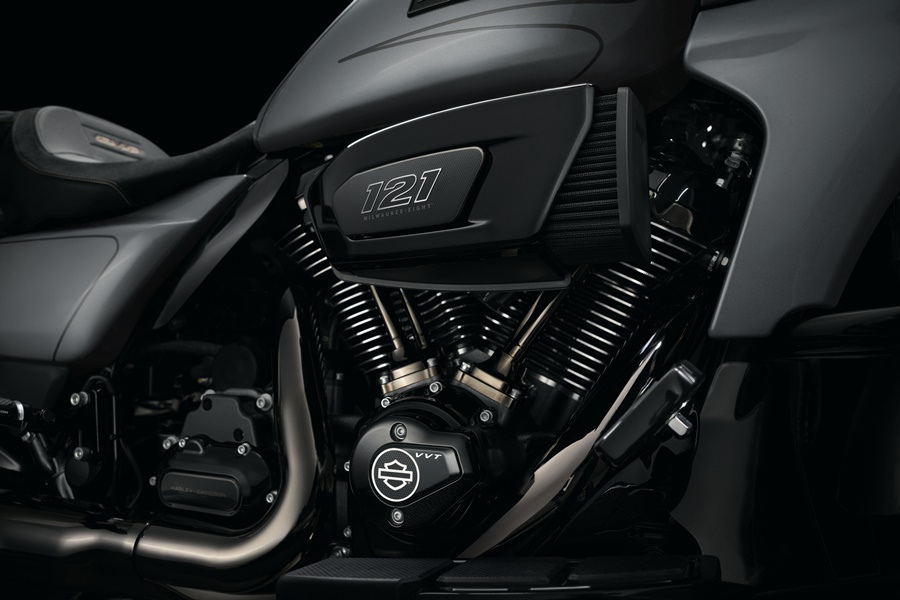 เครื่องยนต์ Milwaukee-Eight® VVT 121 แบบ V-Twin ขนาด 121 ลูกบาศก์นิ้ว โฉมใหม่ สร้างมาตรฐานใหม่ของแรงบิดและปริมาตรกระบอกสูบที่ติดตั้งมาจากโรงงาน บนรถมอเตอร์ไซค์ Harley-Davidson ตระกูล Touring พร้อมโดดเด่นด้วยหัวกระบอกสูบระบายความร้อนด้วยของเหลวที่ช่วยปรับระดับคลายความร้อนให้คลายตัวอย่างเหมาะสม จังหวะวาล์วแปรผัน (VVT) ระบบท่อร่วมไอดี และระบบไอเสียสมรรถนะใหม่