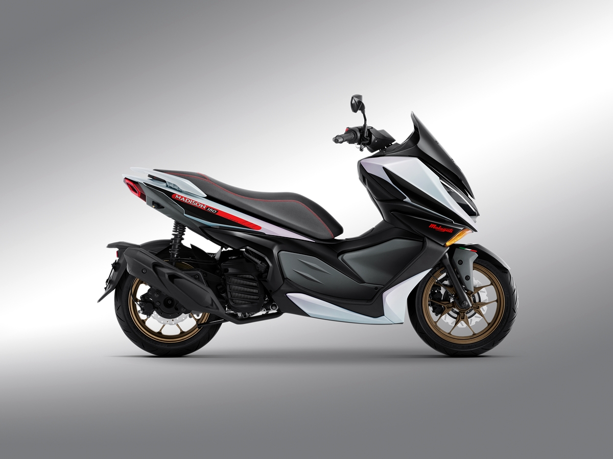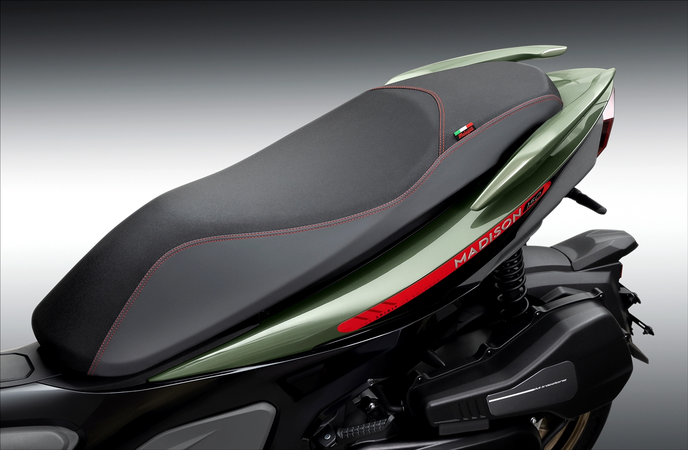 การออกแบบที่ให้ความโฉบเฉี่ยวของเส้นสายงานดีไซน์บนตัวรถ ถ่ายทอด DNA อิตาเลียนดีไซน์ มาไว้ใน New MADISON 150 คันนี้ได้อย่างลงตัว และยังมาพร้อมกับเครื่องยนต์ที่สมูท สไตล์อิตาเลียน พิกัด 150 ซีซี 4 จังหวะ 4 วาล์ว เทคโนโลยีหัวฉีด (Bosch EFI) พร้อมระบบระบายความร้อนด้วยนํ้า (Liquid cool) กับ โดดเด่นด้วยดีไซน์ไฟหน้าและไฟท้าย ในมิติล้ำสมัย เทคโนโลยี FULL LED หน้าจอเรือนไมล์แบบ LCD DISPLAY DYNAMIC MOTION ที่มาเติมสีสันให้ชีวิตตั้งแต่เริ่มบิดสตาร์ท พร้อมความพรีเมียมที่มาในดีไซน์ของรีโมทกุญแจ กับประโยชน์ด้านความปลอดภัย ที่เสริมการปลดล็อคอีกขั้นก่อนบิดสตาร์ทออกตัว เสริมความมั่นใจในทุกการเบรก ด้วยดิสก์เบรกหน้า-หลัง พร้อมระบบเบรกแบบ CBS ถังน้ำมันขนาดใหญ่ จุได้ถึง 10 ลิตร ตอบโจทย์ด้านการใช้งาน และให้ความสะดวกสบายกับวิถีชีวิตยุคใหม่ ด้วยฟังก์ชั่น USB CHARGING SOCKET สำหรับชาร์จอุปกรณ์สื่อสาร