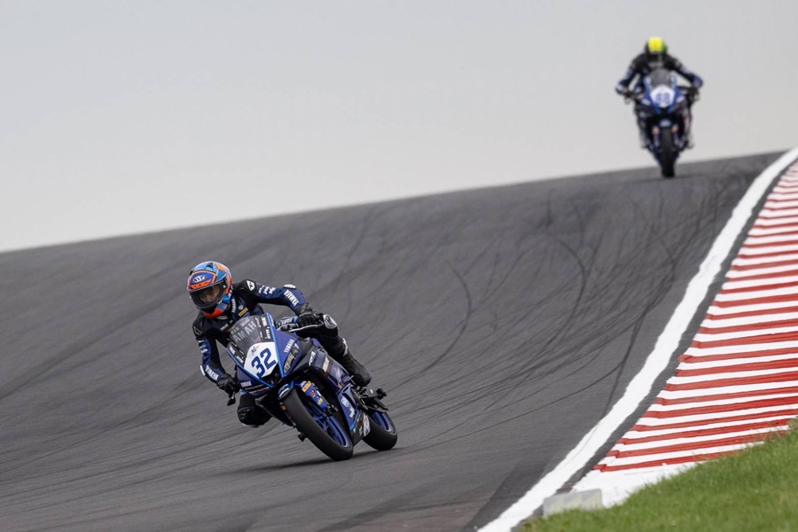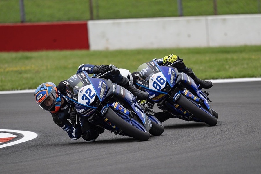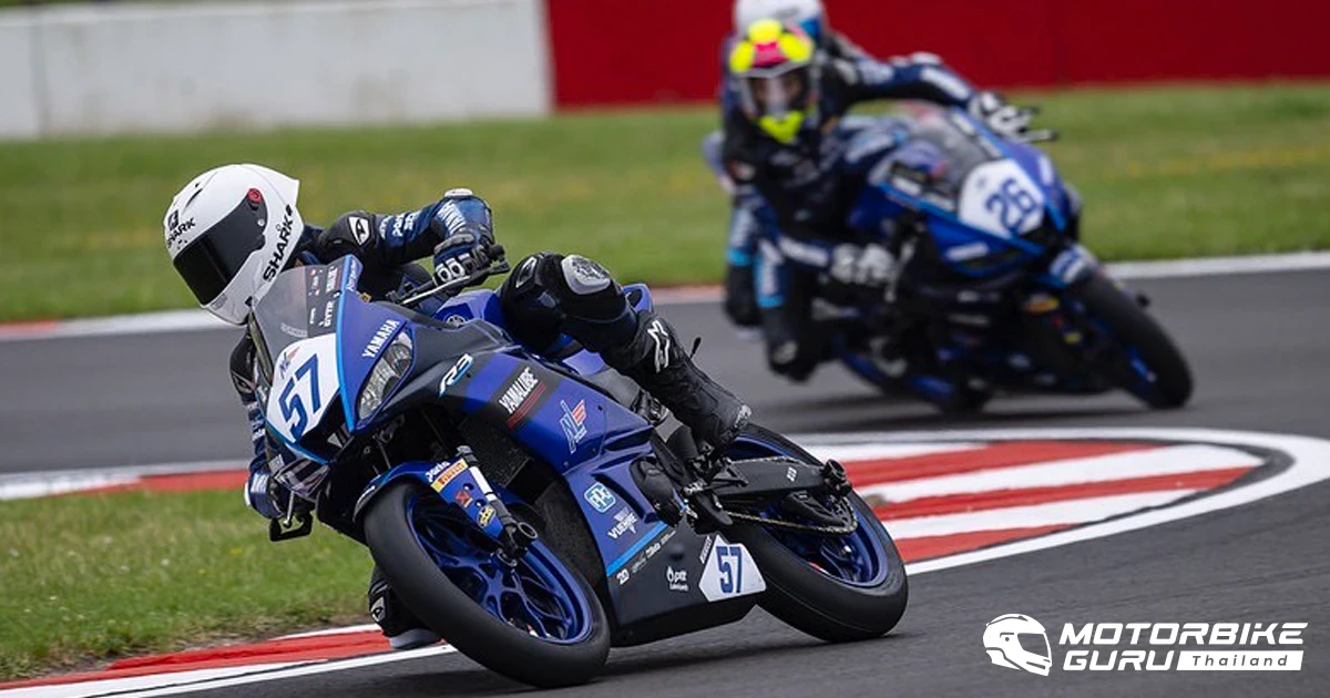 การแข่งขันรถจักรยานยนต์ทางเรียบดาวรุ่งชิงแชมป์ยุโรป รายการ Yamaha R3 bLU cRU European Cup 2023 สนาม 4 ที่ โดนิงตัน พาร์ค เซอร์กิต สหราชอาณาจักร โดยคู่หูนักบิดดาวรุ่งจาก ยามาฮ่า ไทยแลนด์ เรซซิ่ง ทีม อย่าง โดย เอิร์ธ-ธุรกิจ บัวผา และ ไอเดีย-กฤตภัทร เขื่อนคำ สร้างผลงานกระฉูด