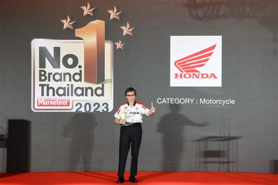 ฮอนด้า ตอกย้ำความสำเร็จในฐานะผู้นำอย่างต่อเนื่องด้วยการคว้ารางวัล No.1 Brand Thailand ประจำปี 2023 ประเภทรถจักรยานยนต์ที่ครองใจผู้บริโภคเป็นอันดับ 1 จากผลสำรวจความนิยมของผู้บริโภคทั่วประเทศไทย โดยนิตยสาร Marketeer สื่อด้านการตลาดอันดับหนึ่งของประเทศไทย นับเป็นการคว้ารางวัลนี้เป็นปีที่ 12 ติดต่อกัน