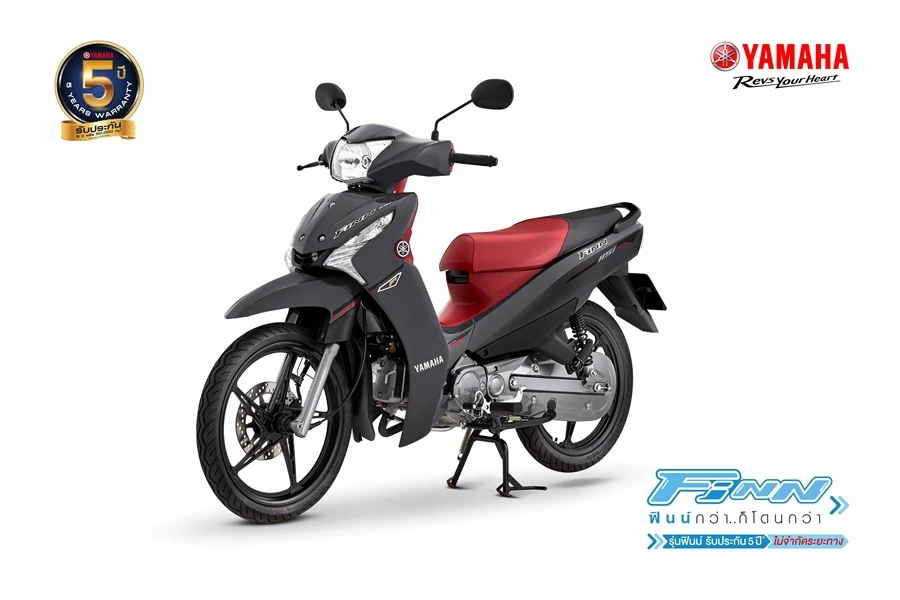 บริษัท ไทยยามาฮ่ามอเตอร์ จำกัด ส่งรถครอบครัวยุคใหม่ระดับพรีเมี่ยม ยามาฮ่าฟินน์ ใหม่! ฟินน์แบบไร้ขีดจำกัด กับยามาฮ่าฟินน์รถครอบครัวระดับพรีเมียม สีสันกราฟิกใหม่ สวยล้ำสไตล์โมเดิร์นพร้อม 9 สีใหม่ สุดพรีเมียม พิเศษ! รุ่น UBS มาพร้อมล้อแม็กสีทอง สวยโดดเด่น ไม่เหมือนใคร และเครื่องยนต์แรง ทนทาน มีสมองกลอัจฉริยะ ECU ควบคุมการสั่งจ่ายน้ำมันทำให้ประหยัด พร้อมเป็นมิตรกับสิ่งแวดล้อม ขับขี่ง่าย ไม่จุกจิก คุ้มค่าด้วยการรับประกันมากถึง 5 ปี ไม่จำกัดระยะทาง*
