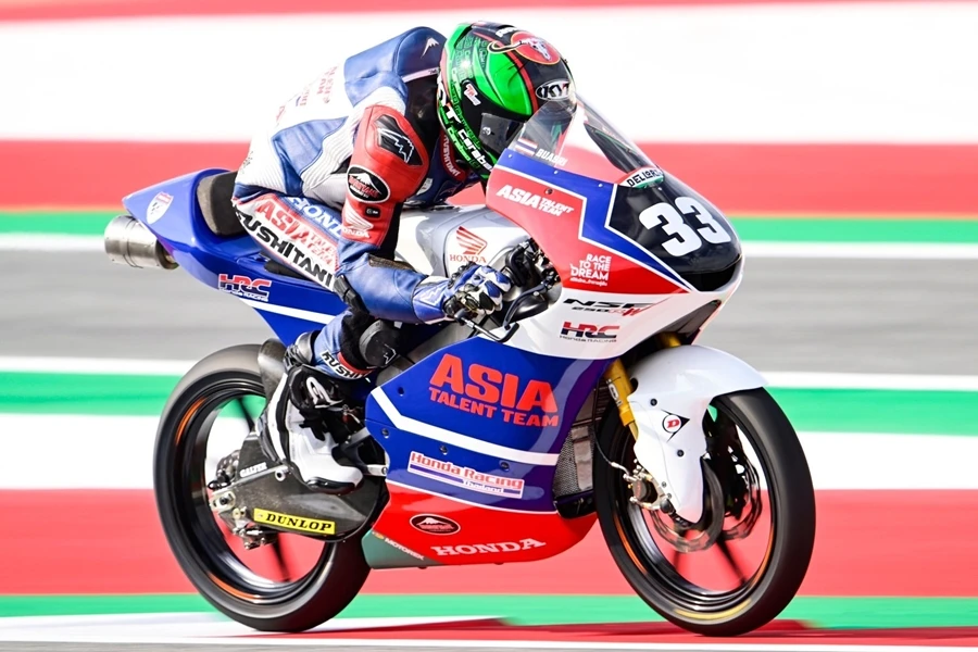 ก๊องส์-ธัชกร บัวศรี นักบิดรุ่นน้องที่ลงบิดไวลด์การ์ด เจ้าของรถแข่งหมายเลข 33 ในรุ่น Moto3 เป็นครั้งที่ 2 ของปีนี้ ก็เคยคว้าโพเดียมที่นี่มาได้ถึง 5 ครั้ง ก็ตัวตั้งเป้าเก็บคะแนนให้ได้ในสนามนี้