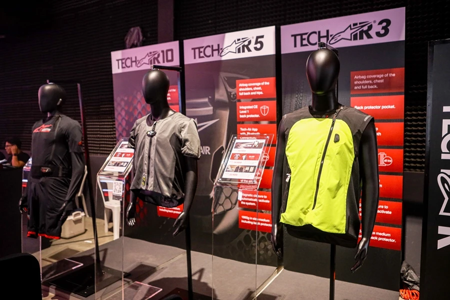 พร้อมเปิดตัว และสาธิตนวัตกรรมล่าสุด TECH AIR ถุงลมนิรภัยที่ถูกออกแบบมาให้เหมาะกับการขับขี่ในหลายรูปแบบ ซึ่งมีการพัฒนามาแล้วกว่า 20 ปี ปกป้องสูงสุด เทียบเท่าการใส่การ์ดหลังถึง 18 ชั้น รองรับแรงกระเทกได้สูงสุดกว่า 95% ใช้งานสะดวกด้วยการเชื่อมต่อแบบ Bluetooth บน TECH AIR APP ซึ่งช่วยให้คุณสามารถอ่านค่าสถานการณ์ทำงาน แบตเตอรี่คงเหลือ ความเร็วเฉลี่ย เส้นทางการเดินทาง หรือข้อมูลที่น่าสนใจต่างๆ เกี่ยวกับการเดินทางได้ มีให้เลือกถึง 3 รุ่นเพื่อให้ครอบคลุมการใช้งานในทุกรูปแบบ ไม่ว่าจะเป็น