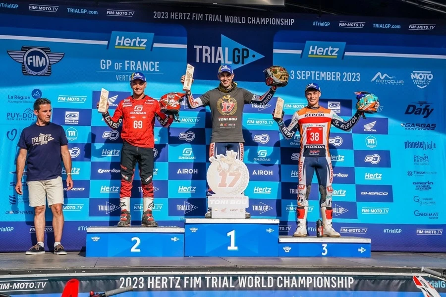 โทนี่ โบ ยอดนักขี่ไทรอัลชาวสแปนิชจาก Repsol Honda Trial Team ผงาดคว้าแชมป์โลกรายการ การแข่งขัน TrialGP World Championship 2023 ได้เป็นที่เรียบร้อย หลังคว้าชัยชนะเรซที่ 1 ในการแข่งขันที่ Vertolaye ในประเทศฝรั่งเศส ด้วยการทำคะแนนสะสมขาดลอยจากคู่แข่ง แม้ว่าจะยังมีการแข่งขันอีก 1 เรซ และอีก 1 สนามสุดท้ายก็ตาม โดยเป็นการคว้าแชมป์โลกไทรอัลครั้งที่ 17 ในประเภทเอาท์ดอร์ ซึ่งรวมทั้งหมดแล้วนับเป็นแชมป์โลกครั้งที่ 33 ของยอดนักบิดฮอนด้า