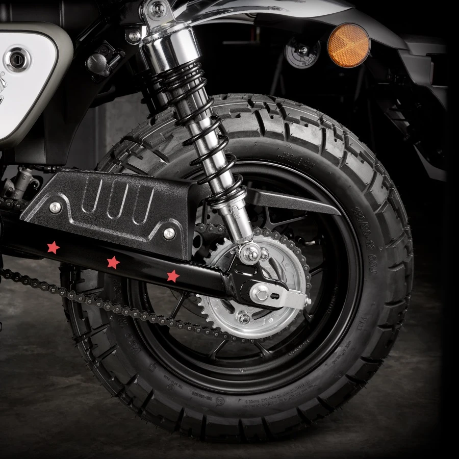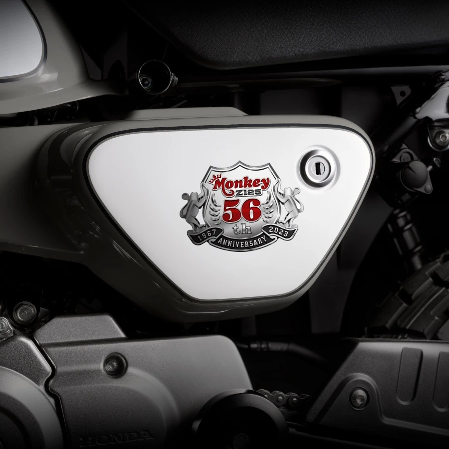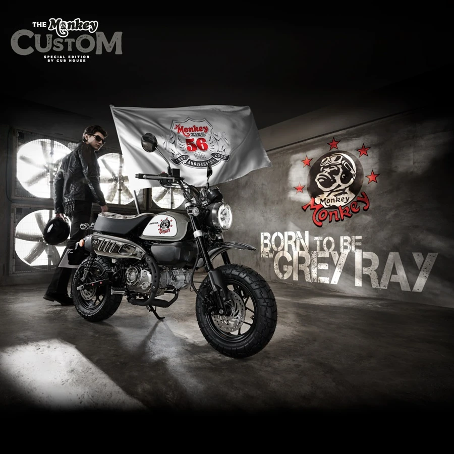 New Monkey 56th Anniversary Custom Edition มาพร้อมคอนเซปต์ Born to Be New Grey Ray กับสีเทาใหม่ Grey Ray เท่, ขรึมอย่างแตกต่าง ให้อารมณ์สปอร์ตด้วย Silver Chrome ลุคสปอร์ตพรีเมี่ยม แต่ไม่ทิ้งลายความแสบซุกซน มาพร้อมกับ Soft Emblem เจ้าลิงสุดซ่าใส่แว่น ก๊อกเกิ้ล ที่เป็นเอกลักษณ์ของความซนที่ไม่เคยเก่า เข้าคู่กับเบาะลายตารางหมากรุกที่สะท้อนความซนของรถได้เป็นอย่างดี