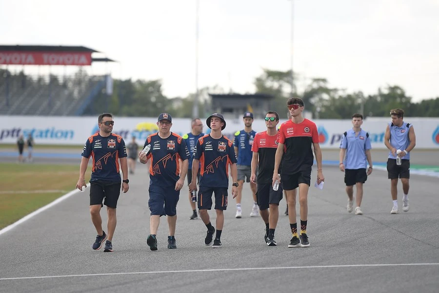 หนึ่งในกิจกรรมสำคัญในสนามแข่งวันนี้คือการลงสำรวจแทร็กของนักบิดทุกคน นำโดยรุ่นใหญ่ที่สุดของโลกอย่าง โมโตจีพี ซึ่งกำลังอยู่ในช่วงสำคัญของการลุ้นแชมป์โลกระหว่าง ฟรานเชสโก้ บันยาญ่า จ่าฝูงชาวอิตาเลียนจาก ดูคาติ เลโนโว ทีม และคู่แข่งคนสำคัญอย่าง ฮอร์เก มาร์ติน นักบิดสแปนิชจาก พรีม่า พรามัค เรซซิ่ง รองจ่าฝูง และ มาร์โก เบซเซ็คคี นักบิดอิตาเลียนจาก มูนนีย์ วีอาร์46 โมโตจีพี ทีม