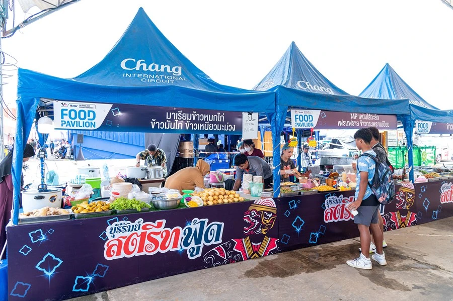 ด้านบรรยากาศการต้อนรับแฟนความเร็ว กรมหม่อนไหม กระทรวงเกษตรและสหกรณ์ ร่วมกับจังหวัดบุรีรัมย์และหน่วยงานที่เกี่ยวข้อง เนรมิตโซนต้อนรับด้านหน้าสนามช้าง อินเตอร์เนชันแนล เซอร์กิต บริเวณป้าย Destination of speed ก่อนจะเข้าสู่สนามการจัดการแข่งขันให้เป็นจุดเช็คอิน ถ่ายภาพของนักท่องเที่ยวที่เข้าเที่ยวชมงาน โชว์วิถีหม่อนไหมแบบครบวงจร ในรูปแบบเสมือนจริง ภายใต้แนวคิด Silk of Buriram จัดแสดงผ้าขาวม้า ผ้าโสร่ง ผ้าที่ย้อมสีธรรมชาติ และ ผ้าซิ่นตีนแดง ลายผ้าไหมเอกลักษณ์ของชาวบุรีรัมย์ ซุ้มสาธิตการแปรรูปอาหารจากหม่อนไหม อาทิ ผัดกระเพราดักแด้,ใบหม่อนทอดกรอบ เป็นต้น เป็นซอฟต์พาวเวอร์ด้านวัฒนธรรมไทยให้นักแข่งและนักท่องเที่ยวได้มาสัมผัส และเผยแพร่ไปทั่วโลก ซึ่งได้รับความสนใจจากผู้ที่มาร่วมชมงานเป็นอย่างมาก