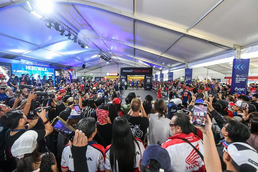 โดยวันนี้ประเดิมด้วยกิจกรรม HERO WALK ที่แฟนโมโตจีพีรอคอย กับการนำนักบิดเดินบนพรมแดง พบปะแฟนอย่างใกล้ชิด ขอลายเซ็นต์ ถ่ายภาพ รวมทั้งกิจกรรม Pit Lane Walk ชมการทำงานในพิตของนักแข่ง ชมรถแข่งตัวแรง เห็นการทำงานของทีมช่างและนักบิดระดับโลก