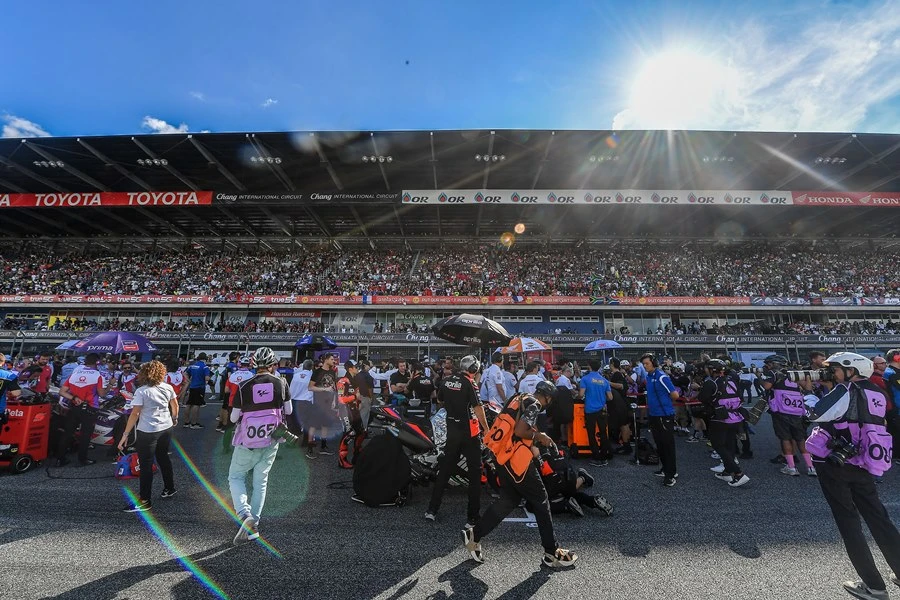 สุดยอดมอเตอร์สปอร์ตของโลก โมโตจีพี สนามประเทศไทย ลงดวลคันเร่งกระหึ่ม สนามช้าง อินเตอร์เนชั่นแนล เซอร์กิต จ.บุรีรัมย์ ท่ามกลางแฟนมอเตอร์สปอร์ตไทยและต่างชาติ หลั่งไหลเข้าชมไม่ขาดสาย ผลควอลิฟายปรากฏว่า ฮอร์เก มาร์ติน ยอดนักบิดสแปนิชจาก พรีม่า พรามัค เรซซิ่ง ทุบสถิติคว้าโพลไปครอง ก่อนระเบิดฟอร์มนำม้วนเดียวเข้าวินสปรินต์เรซ ขณะ ก้อง-สมเกียรติ จันทรา ยอดนักบิดขวัญใจชาวไทยจาก อิเดมิตสึ ฮอนด้า ทีม เอเชีย รีดฟอร์มเฉียบคว้ากริดที่ 5 โมโตทู ลุ้นล่าชัยชนะในโฮมเรซ วันอาทิตย์นี้