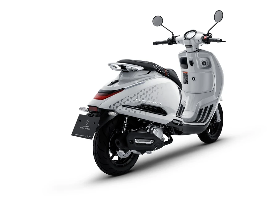นอกจากนี้ ALPHA VOLANTIS ยังคงนำเสนอรถจักรยานยนต์พรีเมียมออโตเมติกรุ่นแรก HORIZON 300 ที่สุดแห่งความหรูหรามีระดับ พร้อมให้ทุกคนได้สัมผัสถึงความสง่างาม ผสานความล้ำสมัย โดดเด่นไม่เหมือนใคร ภายใต้นิยาม Shine Your Elegance โดดเด่นทุกความเป็นคุณ มาพร้อมเครื่องยนต์ขนาดใหญ่ที่อยู่ในมิติตัวรถขนาดคล่องตัว ด้วยน้ำหนักตัวรถเพียง 138 กิโลกรัม ทำให้ขับขี่เคลื่อนตัวง่ายขึ้น ควบคุมน้ำหนักรถสบายขึ้น และใช้งานได้สะดวกยิ่งขึ้น แต่ยังคงความสนุกในทุกการขับขี่ตามแบบฉบับเครื่องยนต์ 300 ซีซี. HORIZON300 มีทั้งหมด 3 สี ได้แก่ สีน้ำเงิน Alpha Blue, สีเทา Hazy Sky Gray และ สีดำ Deep Space Black ราคาจำหน่าย 129,900 บาท