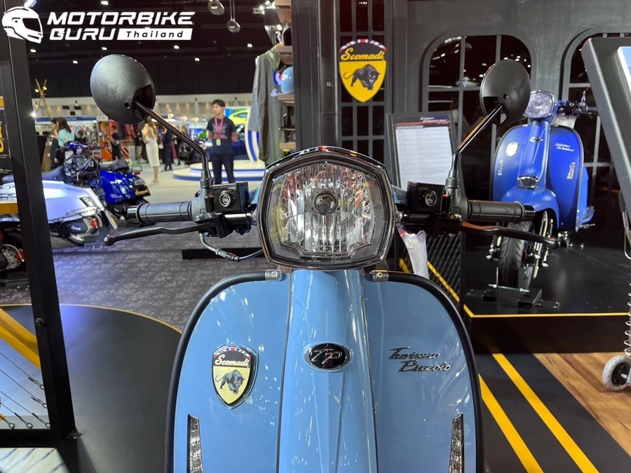 พร้อมกันนี้ยังได้นำเสนอ TURISMO PICCOLO 125i สกู๊ตเตอร์รุ่นใหม่ล่าสุด ที่จัดเต็มดีเอ็นเอของรถสไตล์บริทิช โมเดิร์น คลาสสิก ด้วยดีไซน์พรีเมียมมีเอกลักษณ์บ่งบอกถึงความคลาสสิกโดดเด่นเฉพาะตัวตอบโจทย์ทุกการใช้งาน ให้การขับขี่ของเหล่าไรเดอร์หน้าใหม่และไรเดอร์นิวเจนผู้หลงใหลในสกู๊ตเตอร์คลาสสิกได้สัมผัสประสบการณ์การขับขี่ที่สนุกสนานในทุกไลฟ์สไตล์ ด้วยเครื่องยนต์ขนาด 125 ซีซี กระบอกสูบเดียวที่ให้ความเร็วสูงสุด 85 กิโลเมตรต่อชั่วโมง กำลังเครื่องยนต์สูงสุด 7.25 แรงม้า ที่ 7,300 รอบต่อนาที และแรงบิดสูงสุดที่ 9.67 นิวตันเมตร ที่ 7,200 รอบต่อนาที พร้อมความจุถังน้ำมันเชื้อเพลิง 11 ลิตร ความจุแบตเตอรี 12 โวลต์ มาตรฐาน Euro 4 รวมไปถึงระบบความปลอดภัย โช้คหน้าและหลังแบบไฮดรอลิกปรับพรีโหลดได้ ดิสก์เบรกล้อหน้ากว้าง 220 มิลลิเมตร และล้อหลัง 200 มิลลิเมตร ส่งมอบการขับขี่ที่สะดวกสบายและนุ่มนวลยิ่งกว่าเคย โดยมีให้เลือก 4 สี ประกอบด้วย สี Aetna Blue สี Lightning Yellow สี Panther Black และสี Crimson Red ในราคา 114,900 บาท