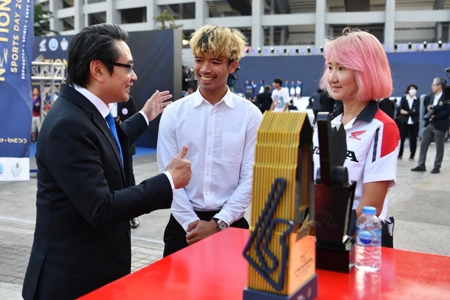 ก้อง-สมเกียรติ จันทรา ยอดนักบิดประวัติศาสตร์ชาวไทยวัย 25 ปี จากโครงการ ฮอนด้า เรซ ทู เดอะ ดรีม ได้รับเลือกให้รับรางวัล นักกีฬาอาชีพชายดีเด่น เนื่องใน วันกีฬาแห่งชาติ ประจำปี 2566 มาครอง ในงานประกาศเกียรติคุณนักกีฬาดีเด่นประจำปี 2566 เมื่อวันที่ 16 ธันวาคมที่ผ่านมา ณ ลานพลาซ่า ราชมังคลากีฬาสถาน การกีฬาแห่งประเทศไทย (กกท.) โดยรางวัลที่ ก้อง-สมเกียรติ ได้รับในครั้งนี้ถือเป็นนักกีฬาจากวงการมอเตอร์สปอร์ตคนแรกที่ได้รับรางวัลดังกล่าว 2 ปีติดต่อกัน