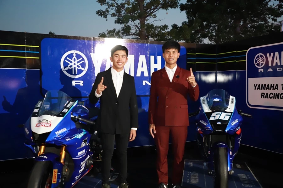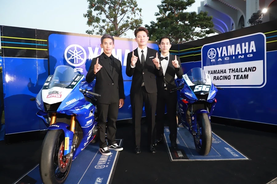 นางสาวกรวรรณ ปิติไทย ผู้จัดการกลุ่มงานวางแผนและกิจกรรม ฝ่ายกีฬายานยนต์ และ นายวิชัย ชัยประภา ผู้เชี่ยวชาญพิเศษแผนกกีฬายานยนต์ บริษัท ไทยยามาฮ่ามอเตอร์ จำกัด พร้อมนักแข่งในสังกัด ยามาฮ่า ไทยแลนด์ เรซซิ่งทีม