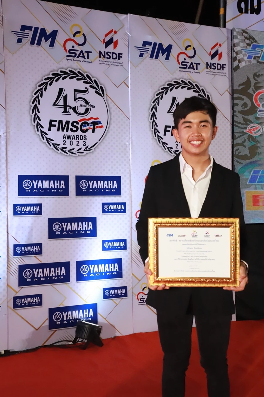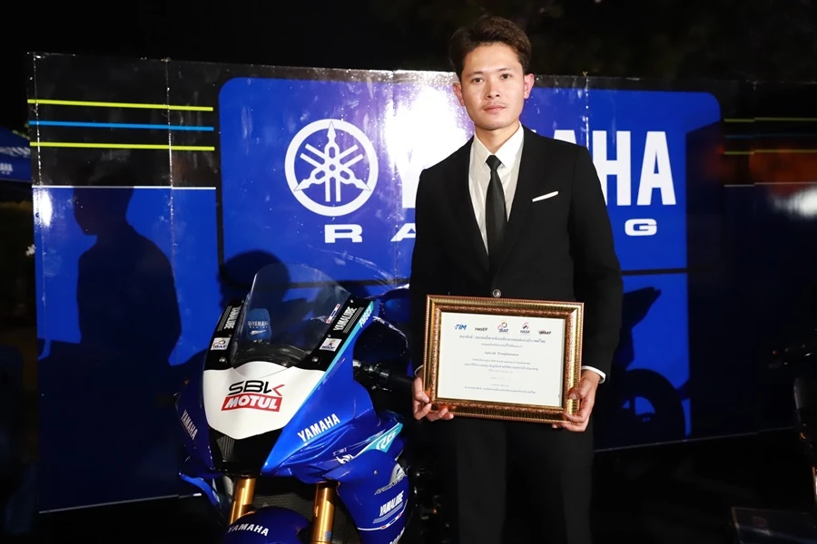 ขึ้นรับรางวัลจาก นายธงชัย วงษ์สวรรค์ ประธานสมาพันธ์กีฬาแข่งขันรถจักรยานยนต์แห่งประเทศไทย หรือ FMSCT ในการที่ยามาฮ่าสนับสนุนและพัฒนาวงการการแข่งขันรถจักรยานยนต์ และส่งนักแข่งไปสร้างชื่อเสียงให้กับประเทศใทยในการลงทำการแข่งขันรถจักรยานยนต์ทางเรียบระดับนานาชาติ