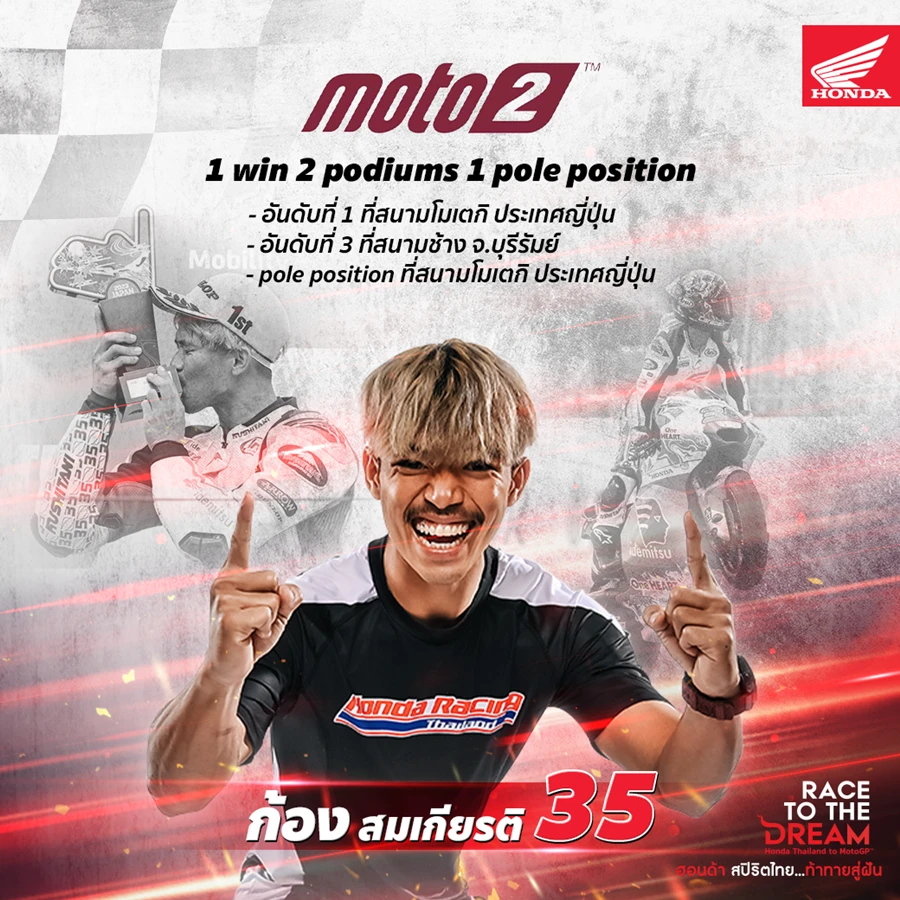 ฤดูกาลมอเตอร์สปอร์ตประจำปี 2023 จบลงอย่างเป็นทางการ นักบิดชาวไทยจากโครงการ ฮอนด้า เรซ ทู เดอะ ดรีม นักแข่งผู้สร้างประวัติศาสตร์ให้กับวงการกีฬามอเตอร์สปอร์ตไทยในการแข่งขันระดับ เวิลด์ กรังด์ปรีซ์ สร้างความชื่นใจให้แก่แฟนๆ กีฬามอเตอร์สปอร์ตชาวไทยอย่างมาก ก้อง-สมเกียรติ จันทรา เจ้าของหมายเลข 35 สังกัด อิเดมิตสึ ฮอนด้า ทีม เอเชีย กับผลงานท็อป 6 ของโลกในรุ่น โมโตทู เวิลด์ แชมเปี้ยนชิพ ด้วยการคว้า 1 ชัยชนะ บิดนำม้วนเดียวจบพร้อมทำลายทุกสถิติของสนาม โมบิลิตี้ รีสอร์ท โมเตกิ ที่ญี่ปุ่น ลงอย่างราบคาบ พร้อมกับระเบิดฟอร์มคว้าโพเดียมในโฮมเรซ สร้างเสียงเฮลั่นจากแฟนชาวไทยที่เข้าชมในสนามอย่างกึกก้อง และนับเป็นนักกีฬาคนแรกของวงการมอเตอร์สปอร์ตไทย ที่ได้รับรางวัล นักกีฬาอาชีพชายดีเด่น วันกีฬาแห่งชาติ 2 ปีซ้อน