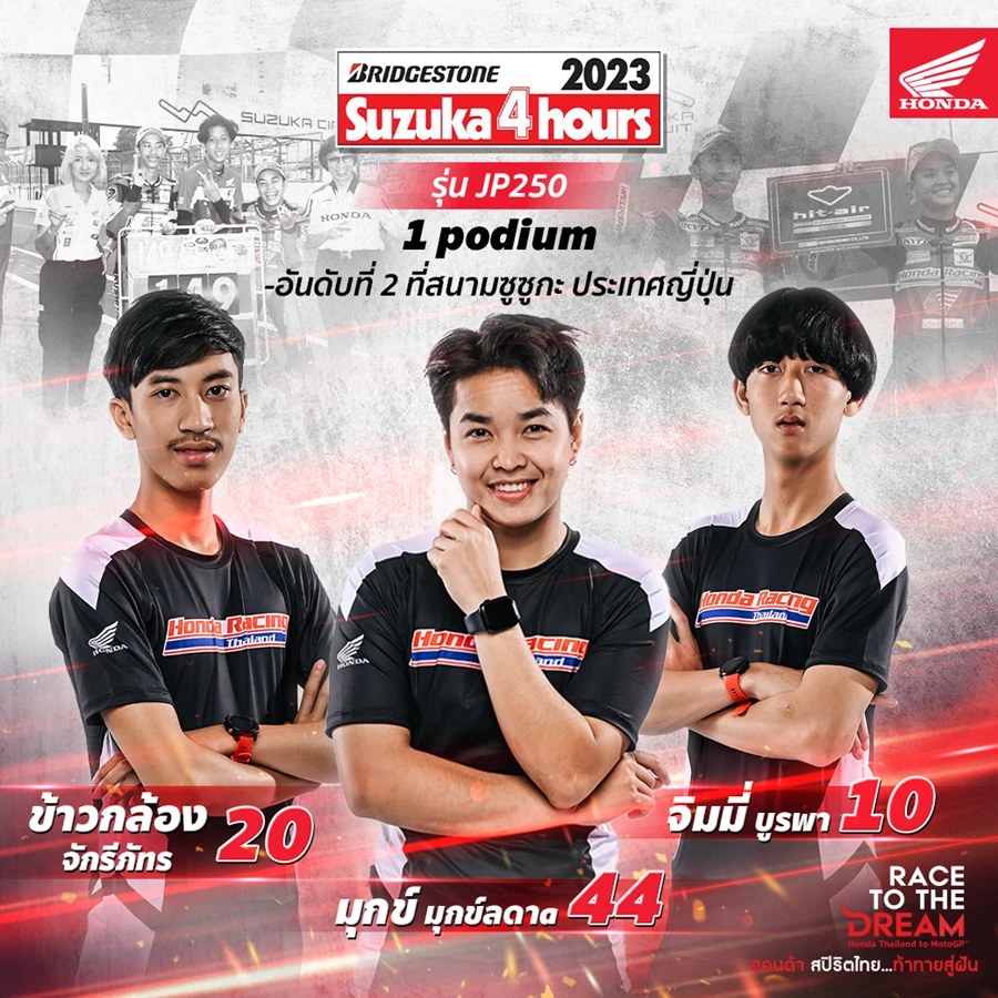 ขณะรุ่น เอเชีย โปรดักชั่น 250 ซีซี (AP250) ข้าวกล้อง-จักรีภัทร พฤฒิสาร ยอดนักบิดดาวรุ่งไทยวัยเพียง 16 ปี เป็นนักบิดที่อายุน้อยที่สุดหนึ่งเดียวที่คว้าแชมป์ โดยครองท็อป 4 คะแนนสะสม กับ 1 ชัยชนะ 5 โพเดียม ด้วยรถแข่ง Honda CBR250RR หมายเลข 20 และ ทีมเมทสาวแกร่ง มุกข์-มุกข์ลดา สารพืช หมายเลข 44 รั้งอันดับ 5 คะแนนสะสม คว้า 1 ชัยชนะ 5 โพเดียม และ มิกซ์-ธนัช ละอองปลิว หมายเลข 11 รั้งอันดับที่ 11 ส่วน แชมป์-ภาสวิชญ์ ฐิติวรารักษ์ ลงแข่งขันในรุ่น เอเชีย ซูเปอร์ไบค์ 1,000 ซีซี บิดรถแข่ง Honda CBR1000RR-R หมายเลข 95 รั้งอันดับ 10