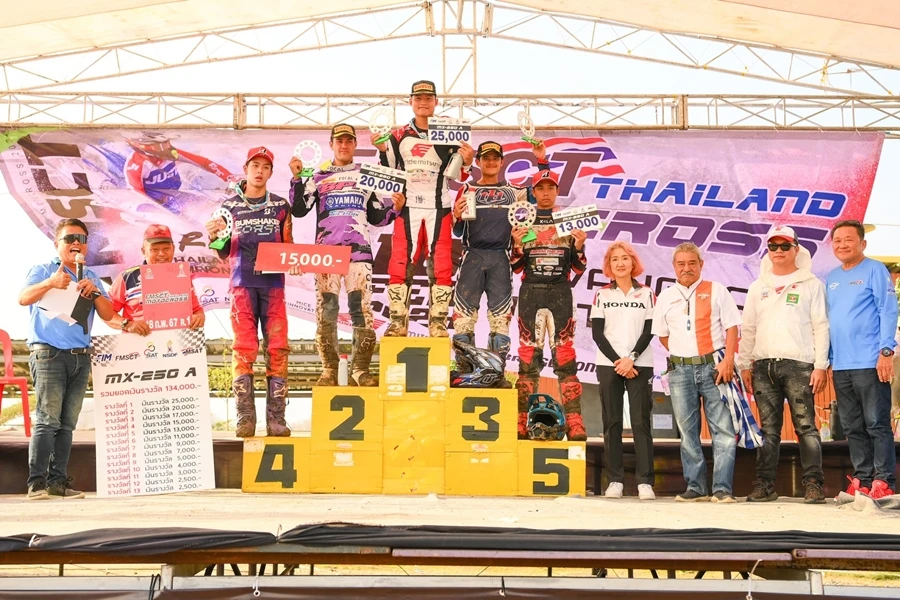 ยศ-ภานุพงศ์ หมายเลข 1 ควบ Honda CRF250R โชว์ความแข็งแกร่งเหนือคู่แข่งในการแข่งขัน FMSCT Thailand Motocross 2024 เปิดฤดูกาล ทะยานคว้าชัยชนะแบบเหนือชั้น เก็บคะแนนสะสมชิงแชมป์ประเทศไทย สนามที่ 1 ในรุ่นท็อปสุดของรายการอย่าง MX250-A ขณะที่ อินทรีแซงค์-กฤษฎา จำรูญจารีต ยอดนักบิดแชมป์ประเทศไทย 4 สมัย หมายเลข 17 สามารถกลับขึ้นมาจากการพลาดล้ม จบในอันดับที่ 5 ส่งผลให้ฮอนด้าคว้าดับโพเดียม ณ สนามวังน้อยโมโตครอส แก่งคอย จ.สระบุรี เมื่อวันอาทิตย์ที่ 18 กุมภาพันธ์ ที่ผ่านมา