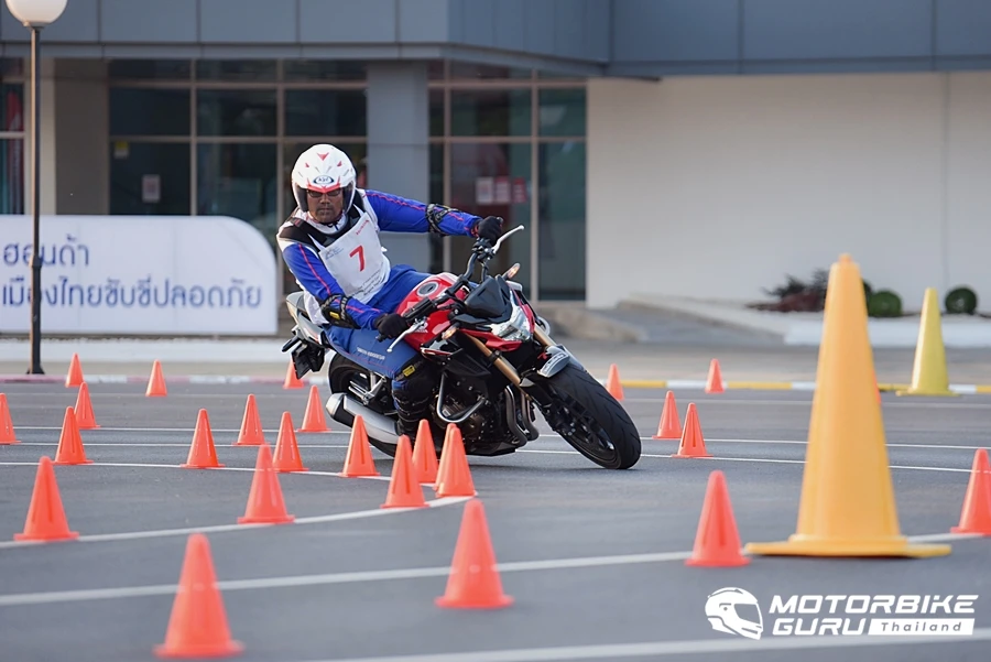 3.Low Speed Balance Course – สถานีทดสอบการทรงตัวด้วยความเร็วต่ำ เพื่อให้ครูฝึก ฯ ใช้เทคนิคความสามารถในการขับขี่ทรงตัว และเคลื่อนที่ไปอย่างช้า ๆ โดยใช้ทางท่าทางการขับขี่ที่ถูกต้อง