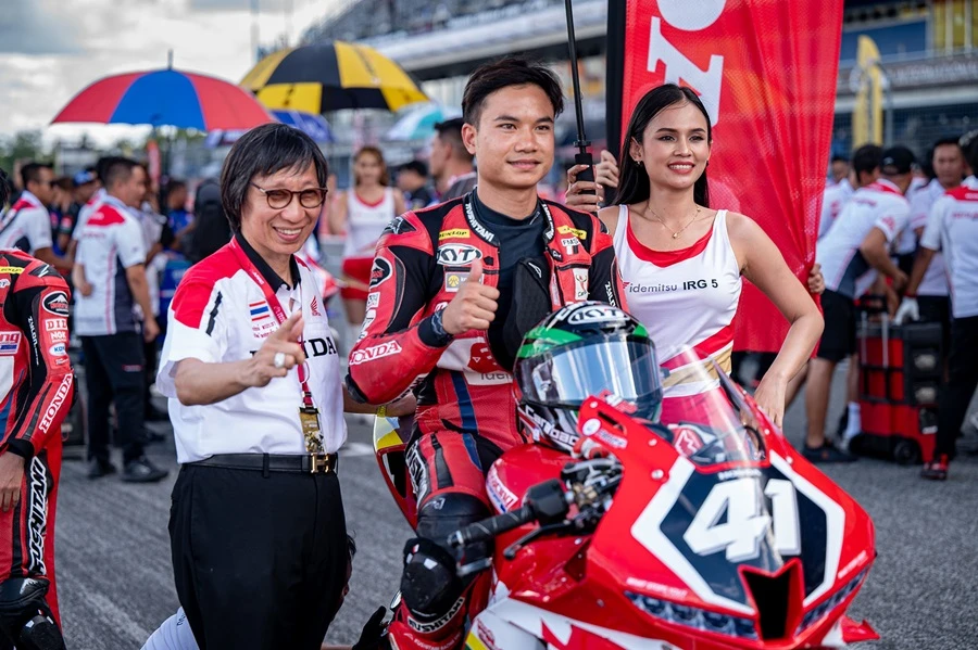 ส่วนรุ่น เอเชีย โปรดักชั่น 250 ซีซี มี 3 นักบิดไทยจาก อีสต์ เอ็นเจที เรซซิ่ง ทีม ได้แก่ บิว-วริทธิ์ ทองนพคุณ, กาฟิวส์-วัชรินทร์ ทับทิมอ่อน และ ฟิล์ม-ปิยวัฒน์ ประทุมยศ