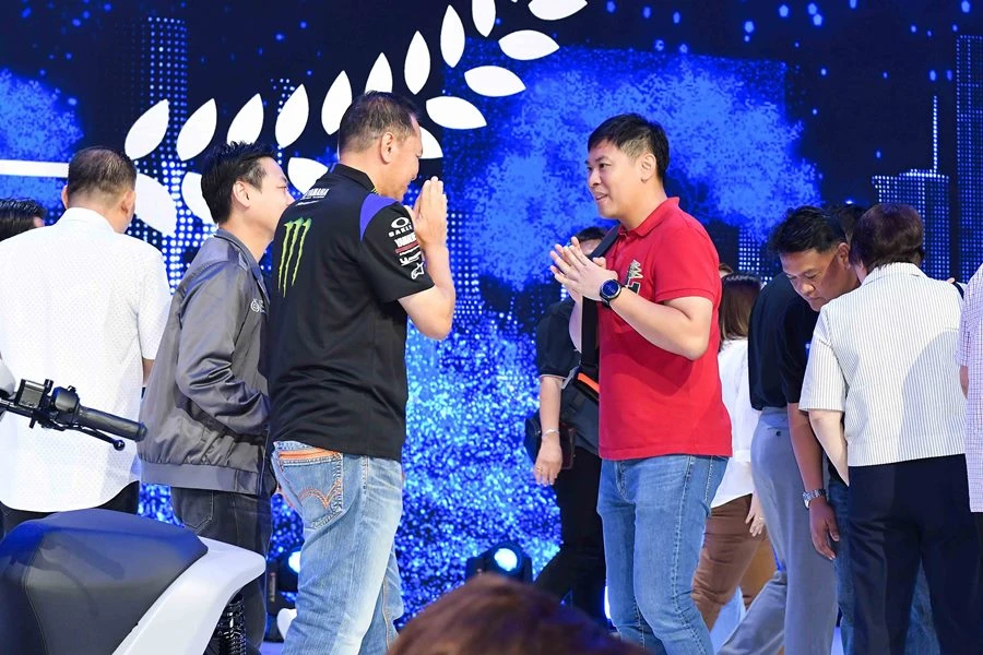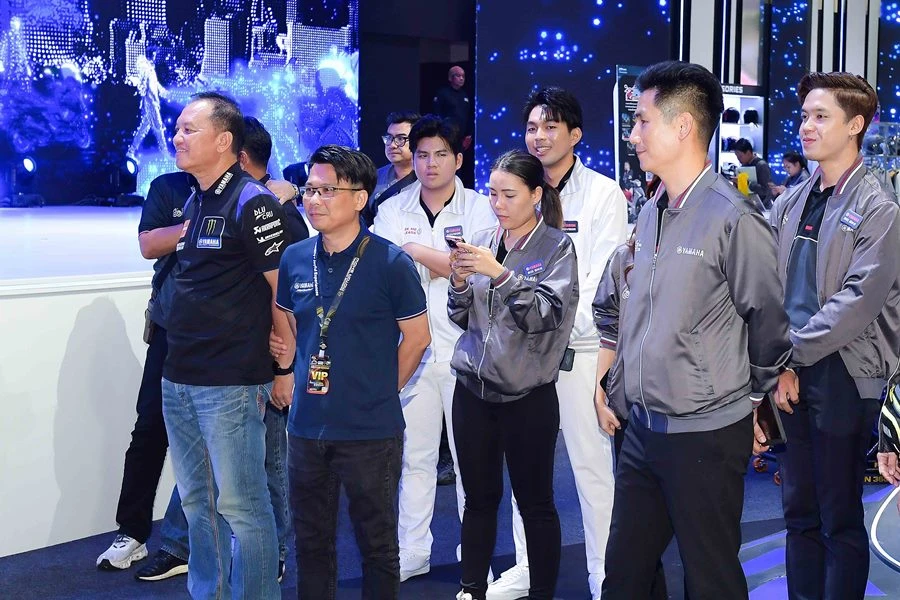 นายภาณุพล กิตติคำรณ ผู้จัดการใหญ่ด้านการค้า, นายอุกฤษณ์ ภาควิวรรธ รองผู้จัดการใหญ่ด้านวางแผนการค้า และการตลาด, นายกัมพล พรสูงส่ง รองผู้จัดการใหญ่ด้านการขาย บริการ และอะไหล่ พร้อมคณะผู้บริหารระดับสูง และพนักงาน บริษัท ไทยยามาฮ่ามอเตอร์ จำกัด ร่วมฉลองยอดจำหน่ายร่วมกับร้านผู้จำหน่ายในกรุงเทพฯ และปริมณฑล ในงาน บางกอก อินเตอร์เนชั่นแนล มอเตอร์โชว์ ครั้งที่ 45